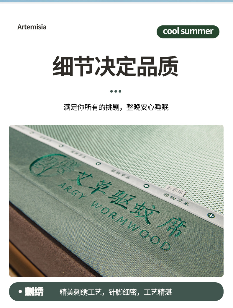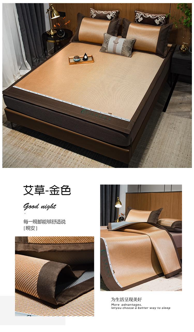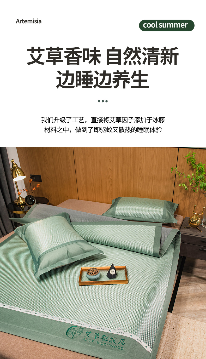 商品名称:全季家居 2025新款A类抗菌防螨艾草驱蚊冰藤席凉席席子 艾草-咖色