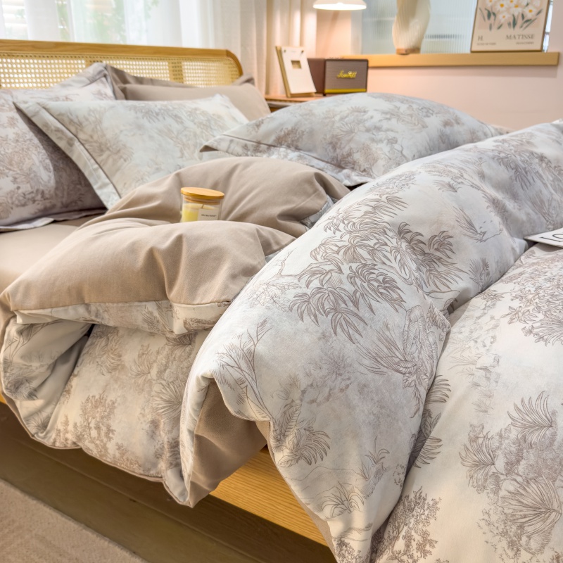 (总)鸿森林 2025新款全棉纯棉磨毛印花四件套,德芙-粉,花吟-黄,浪漫花舞-兰,露西-灰,律动-粉,落樱-粉,曼城-蓝,莫奈-灰,莫奈-咖,沙慕-蓝