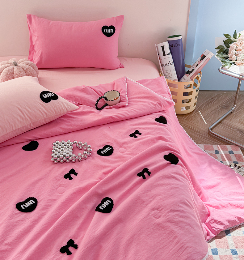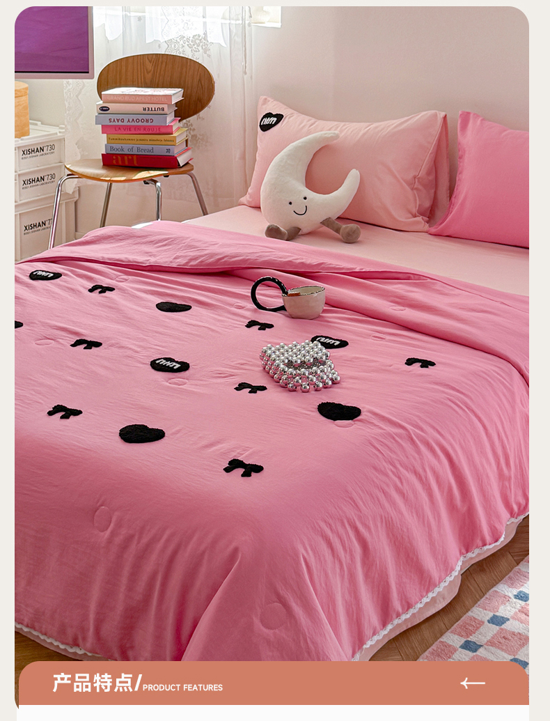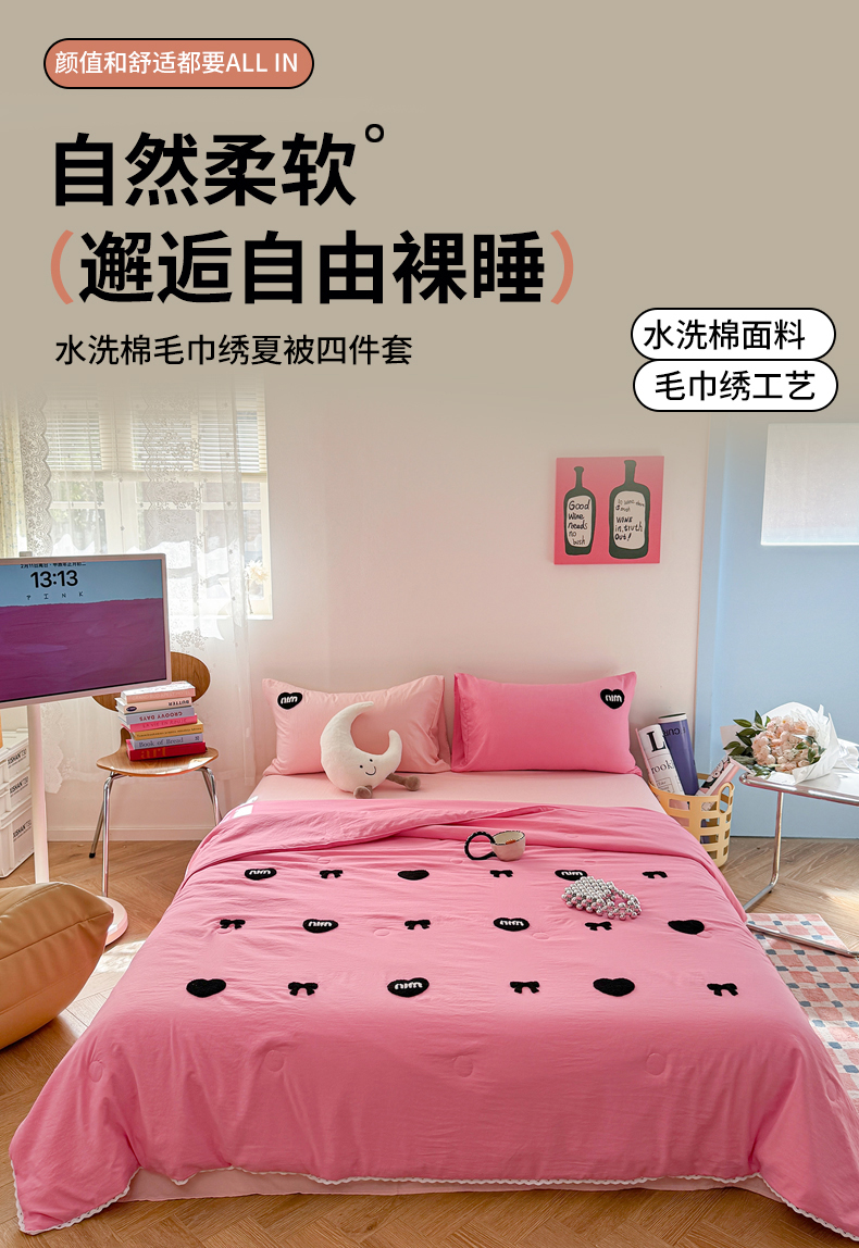 当前位置: 91家纺网 > 商品网购 > 床品套件 > 四件套 > 夏被四件套 > Sweet dreams甜梦 2025新款亲肤水洗棉毛巾刺绣夏被空调被夏凉被四件套 玫粉MIU