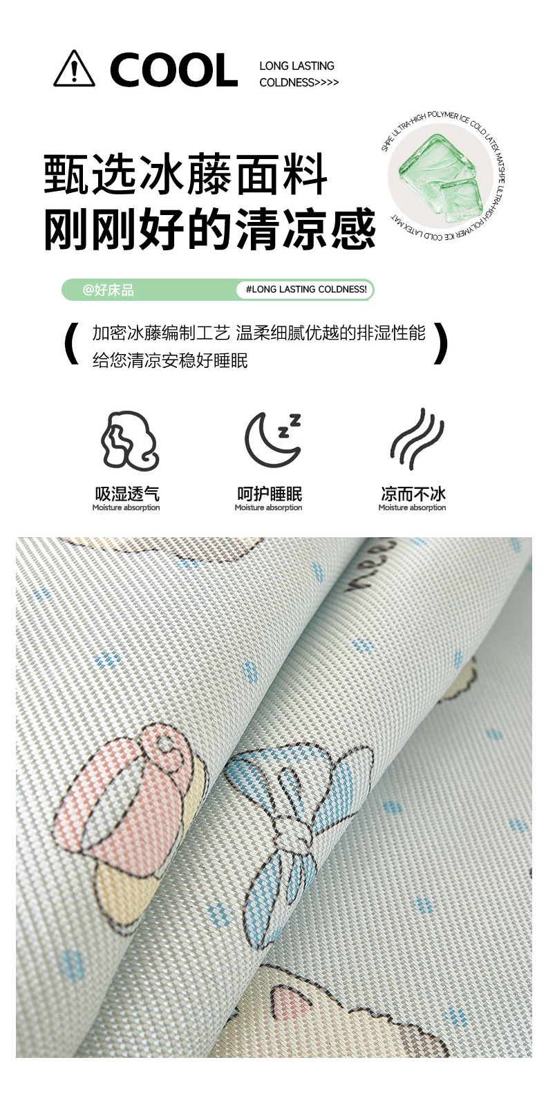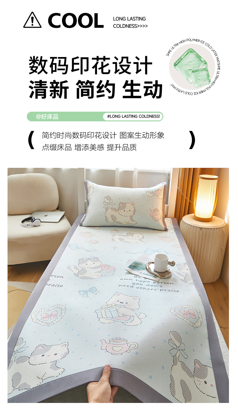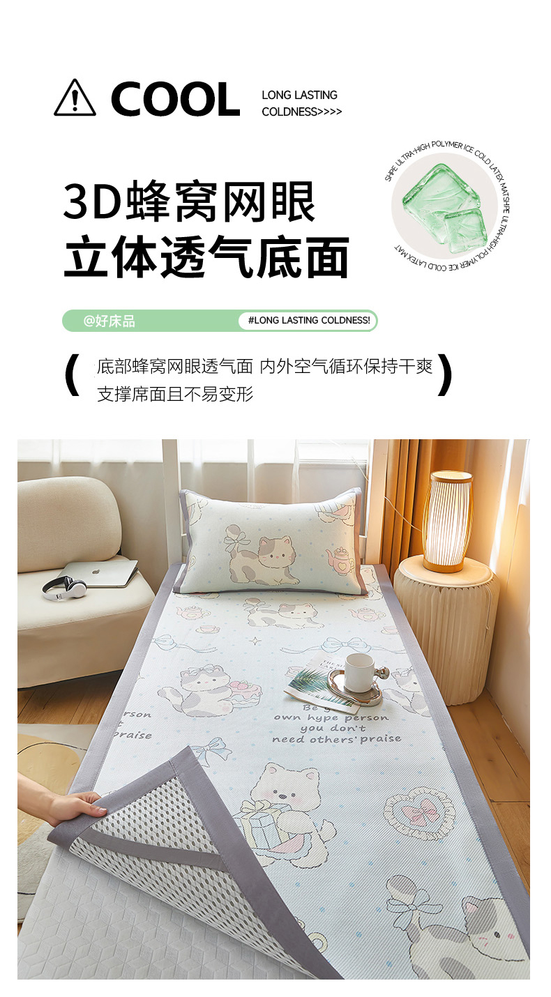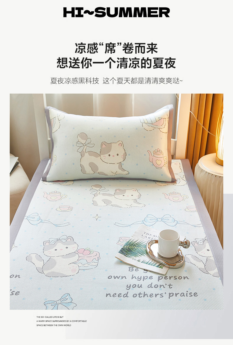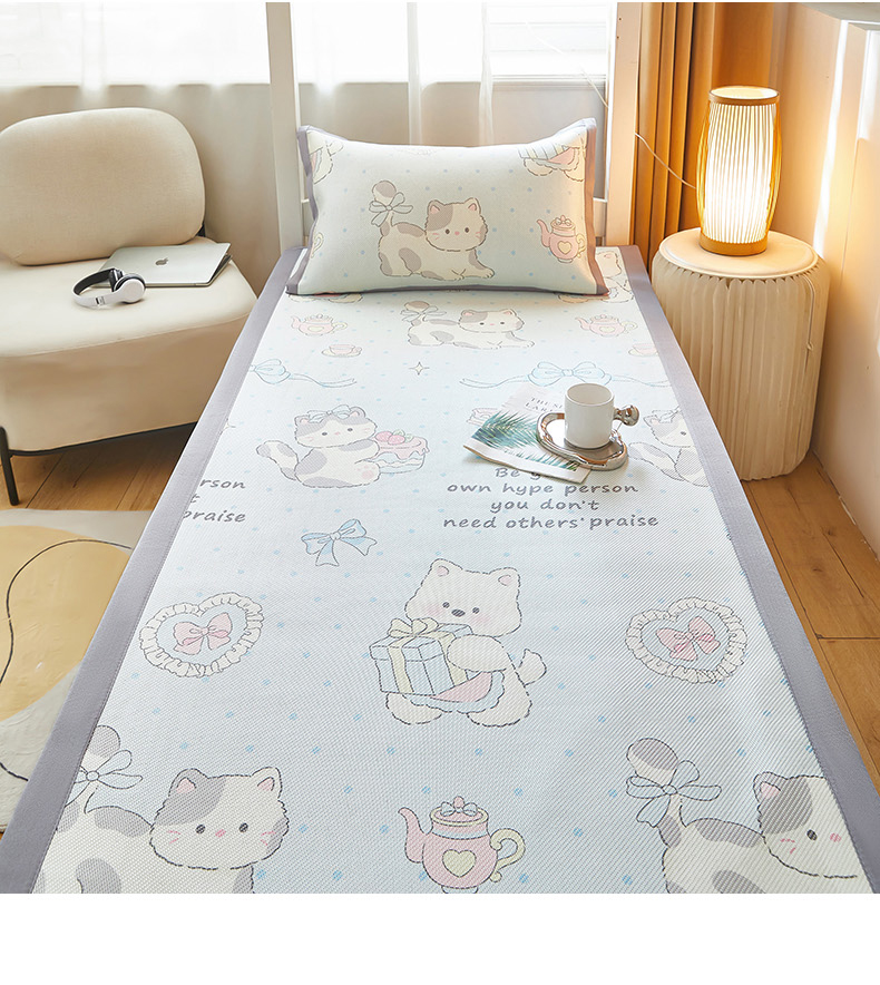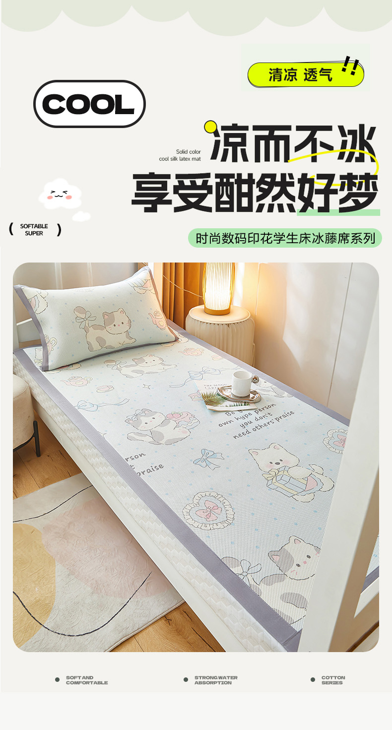 商品名称:沐慕 2025新款学生床小清新印花冰藤席 萌宠礼物
