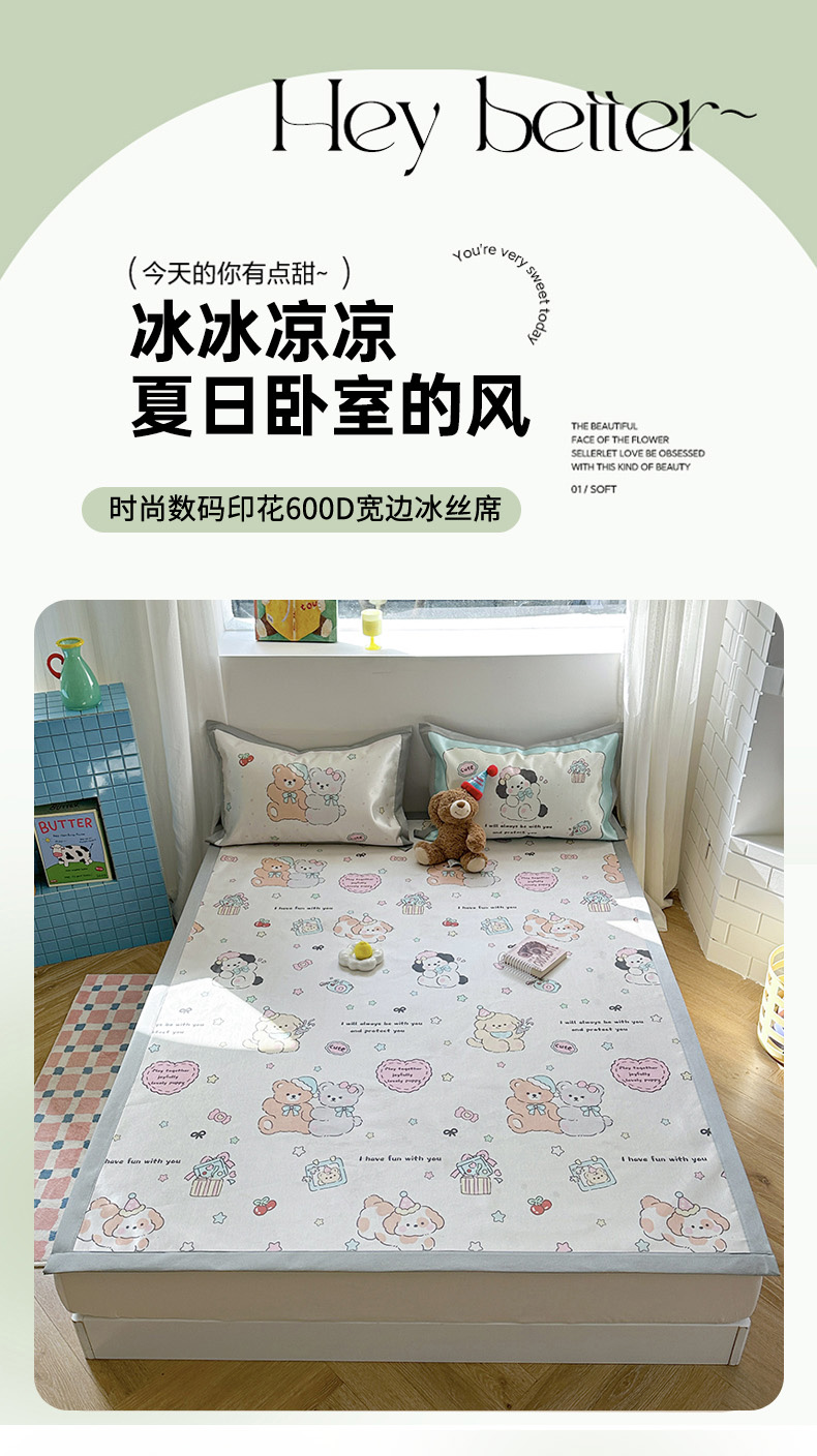 沐慕 2025新款时尚数码印花600D冰丝凉席系列 冰丝-好伙伴