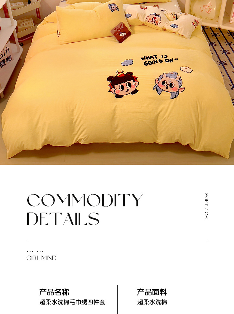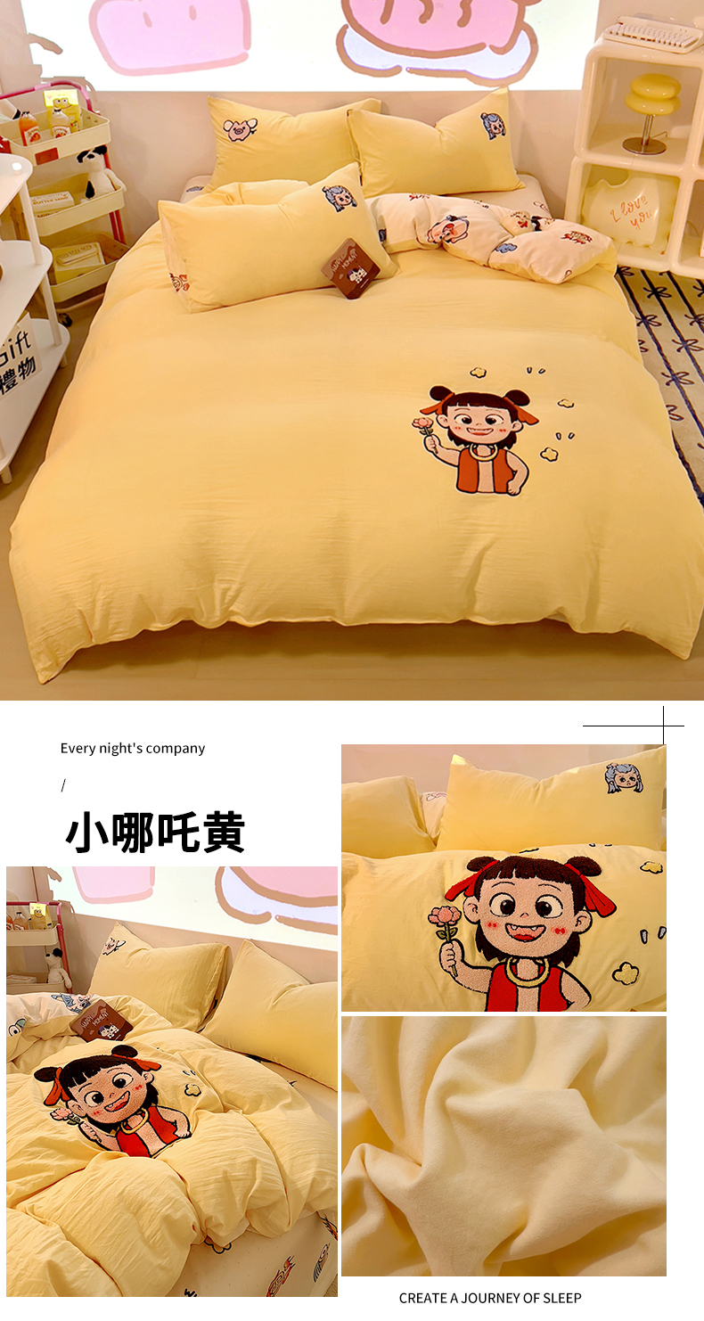 (总)易辰美 2025新款水洗棉毛巾绣夏被空调被夏凉被四件套,库洛米,海宝宝,梦幻动物园,斑点狗(黄),斑点狗(兰),哪吒敖冰(兰),小哪吒(黄),吐司熊,KT猫,卡皮巴拉,组合图仅供参考