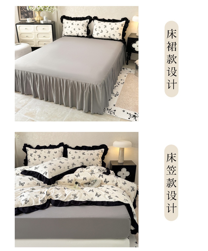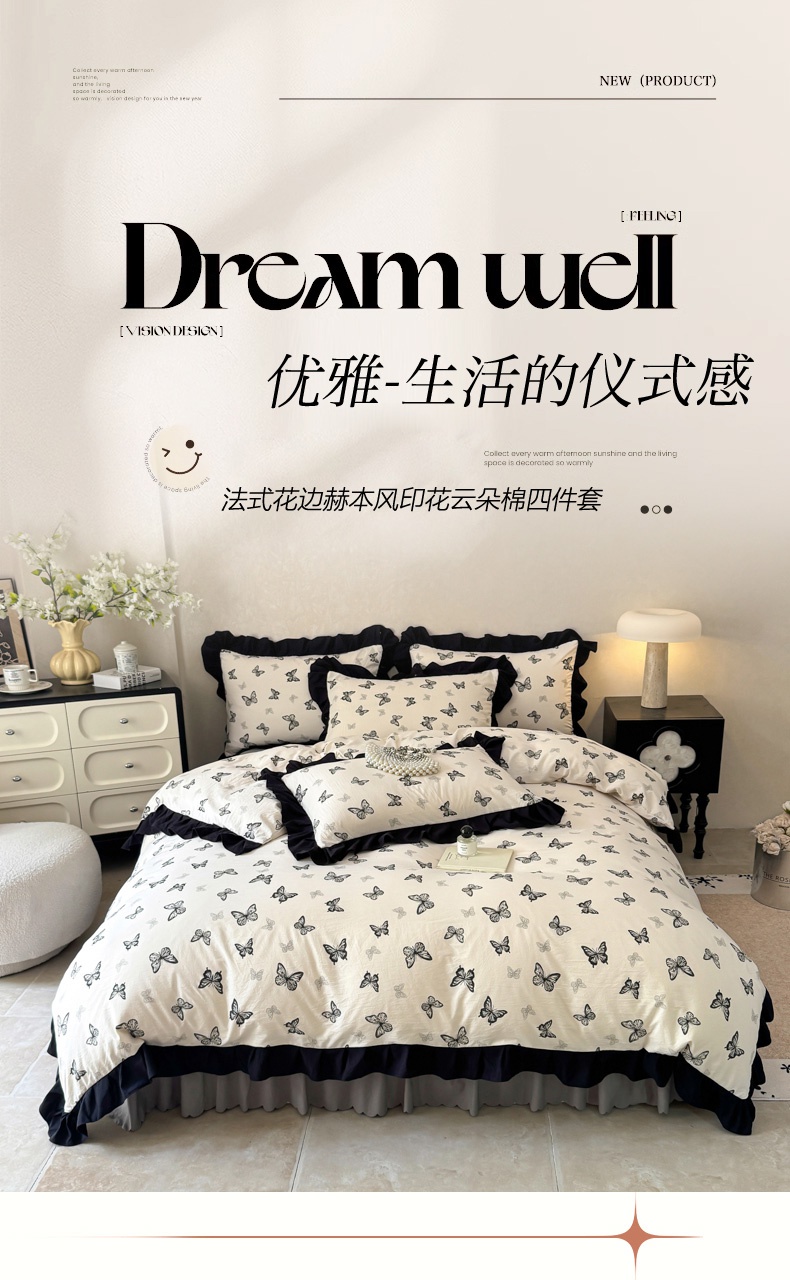(总)上尚居 2025新款法式花边赫本风印花云朵棉四件套