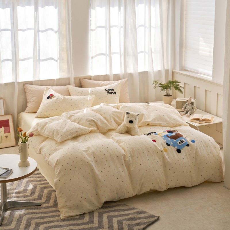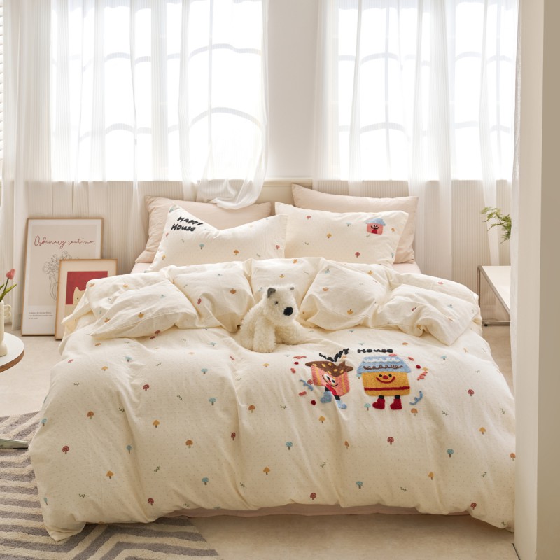 商品名称:洋铭区(原狠狠爱) 2025新款A类全棉双层纱毛巾绣四件套 单车小熊