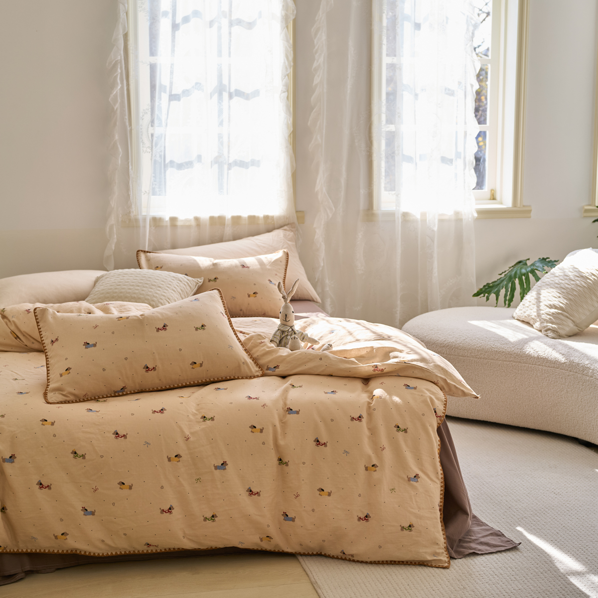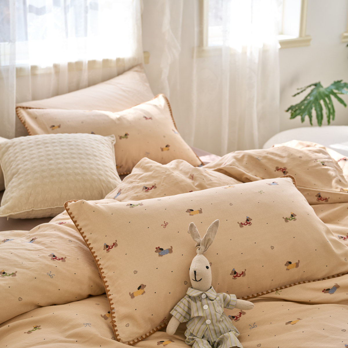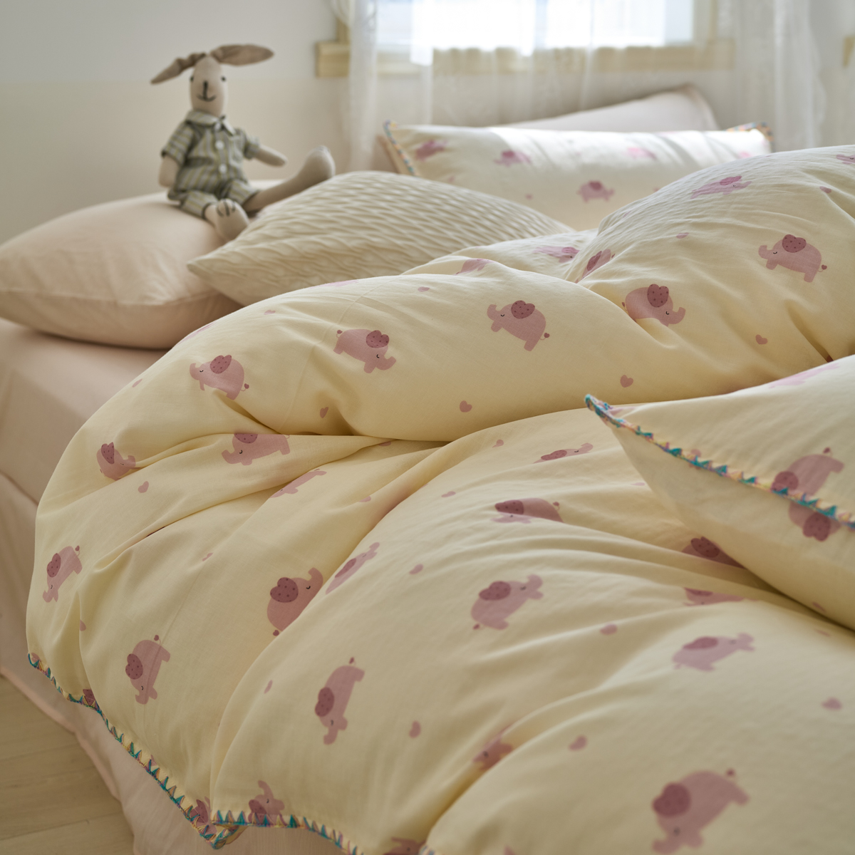 (总)洋铭区(原狠狠爱) 2026新款春季全棉彩边双层纱四件套,爱心宝莉,波斯小懒狗,繁花兔兔,格格小熊,海蓝小木马,红格小马,红枣小兔,花朵兔兔,焦糖小熊,兰花香,绿芽小马,萌宠小分队,奶茶蝴蝶结,奶糕熊熊,汽车派对,桃桃粉花,甜果小象,图图小狮子,幸运小可爱,熊猫嘟嘟,遇见粉花,月光宝宝