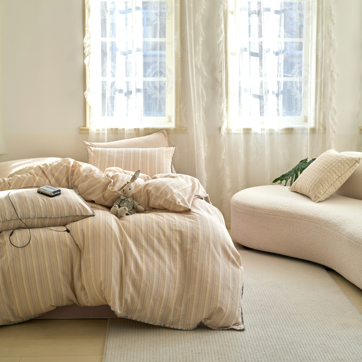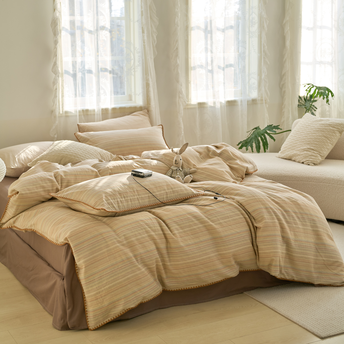(总)洋铭区 2023新款全棉床盖三件套,微醺白