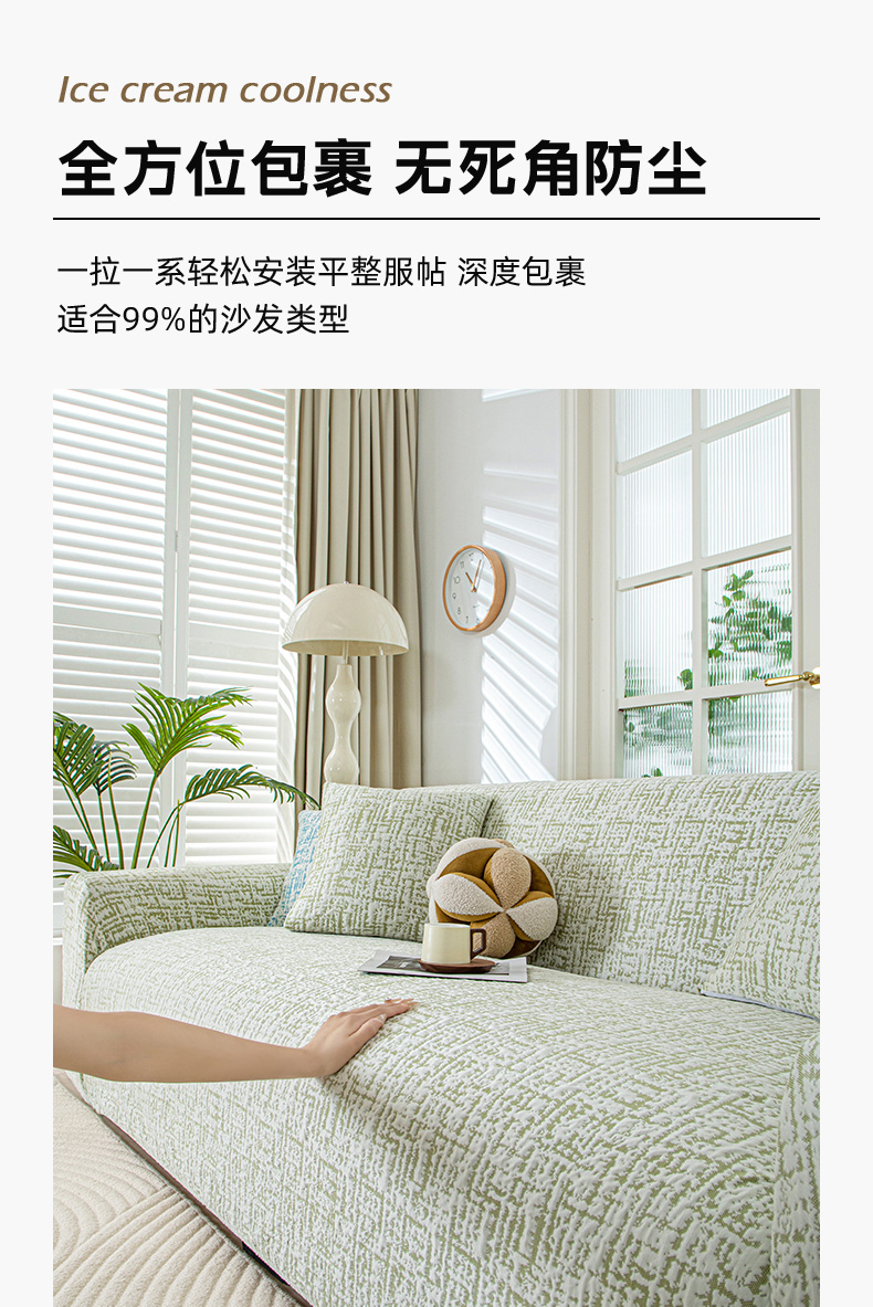 沐沐家纺 2026新款夏茵沙发套 抹茶绿