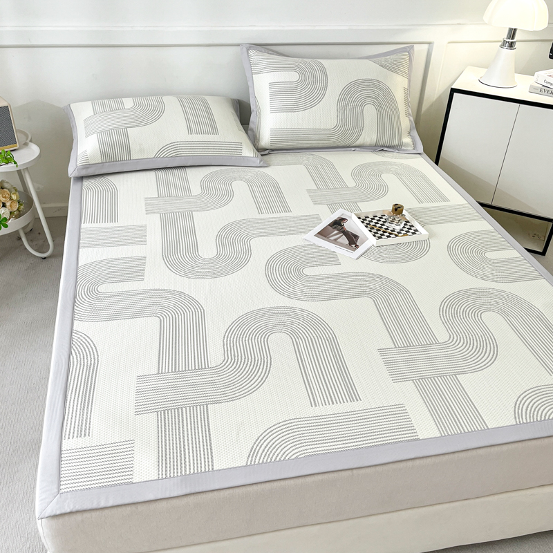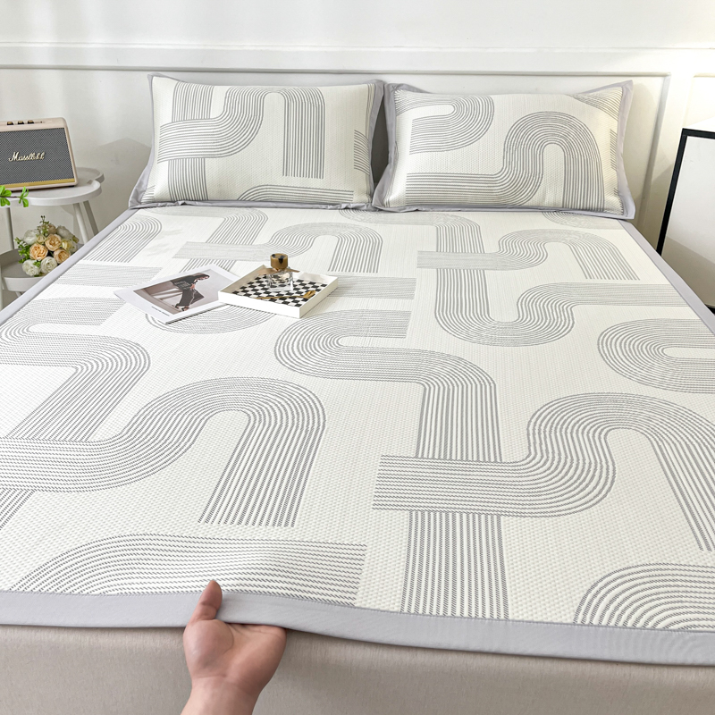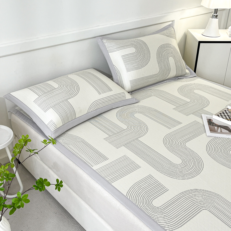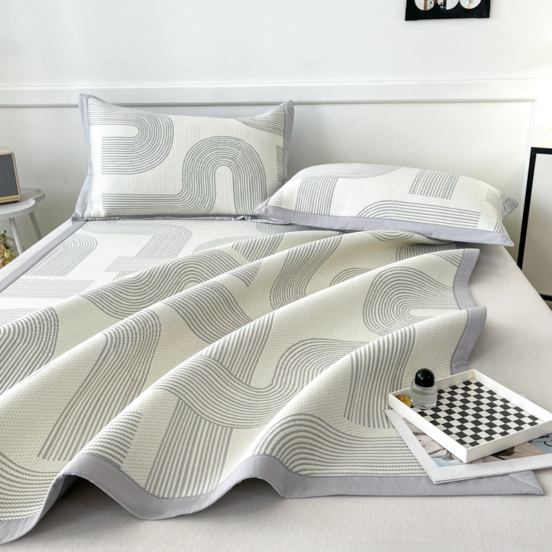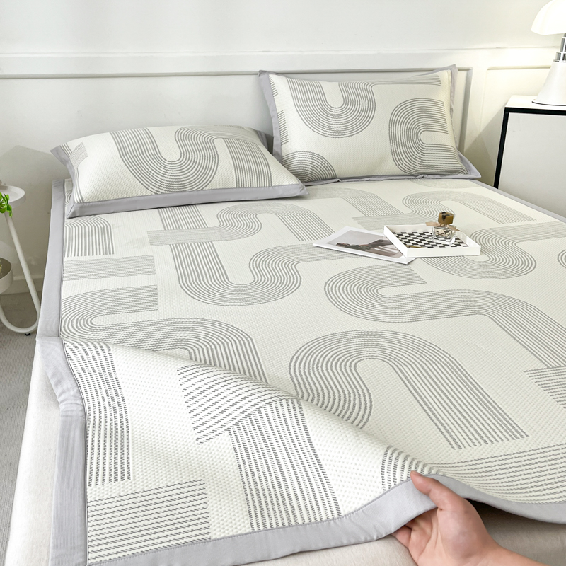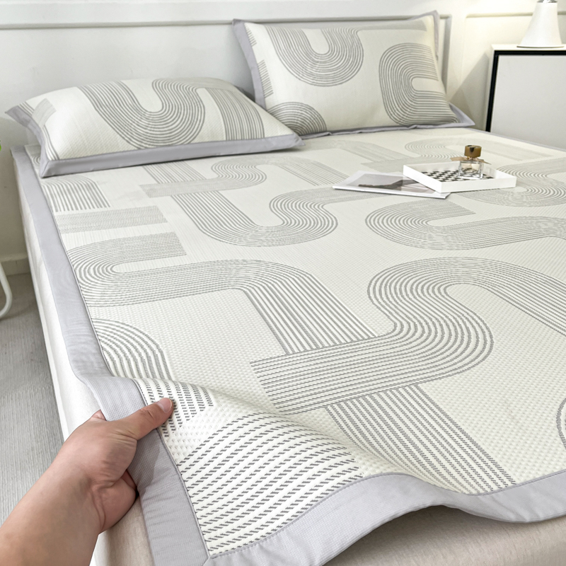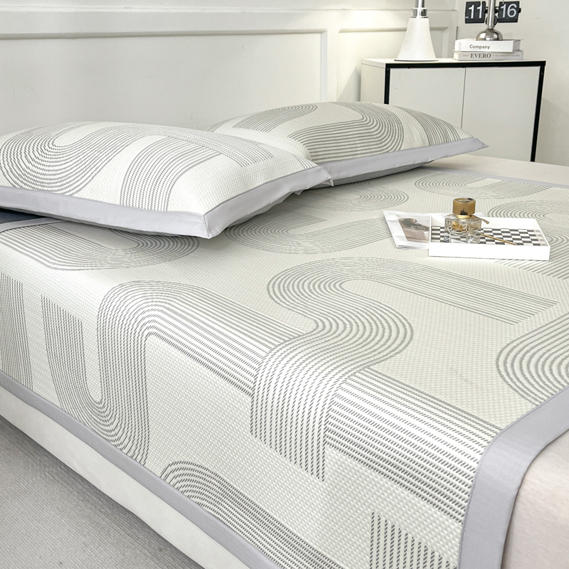 (总)美洲琳 2025新款650克凉豆豆凉席床裙三件套,湖蓝,浅灰,水绿,香槟,心粉