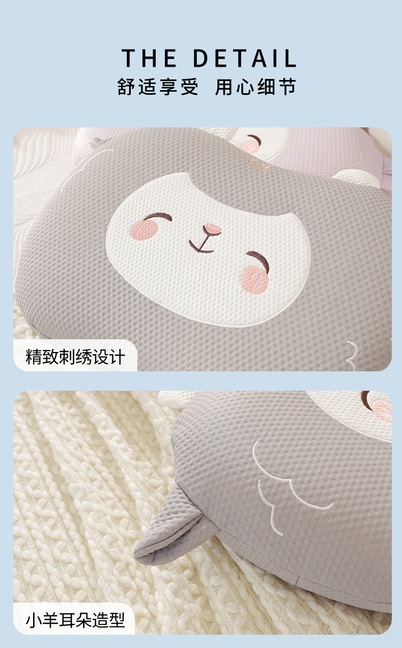 商品名称:蔻眠 可爱小羊-凉感丝凉豆豆猫肚记忆枕儿童枕芯学生护颈枕头 主图
