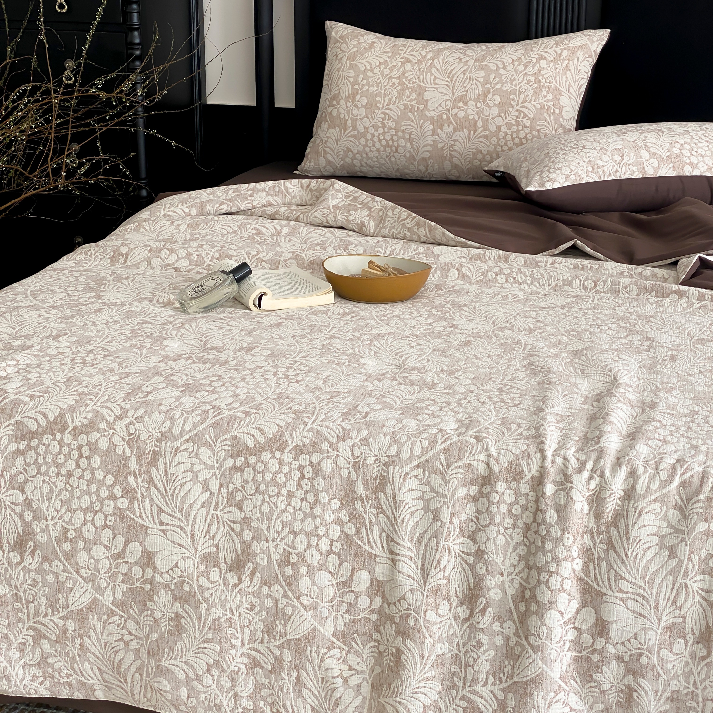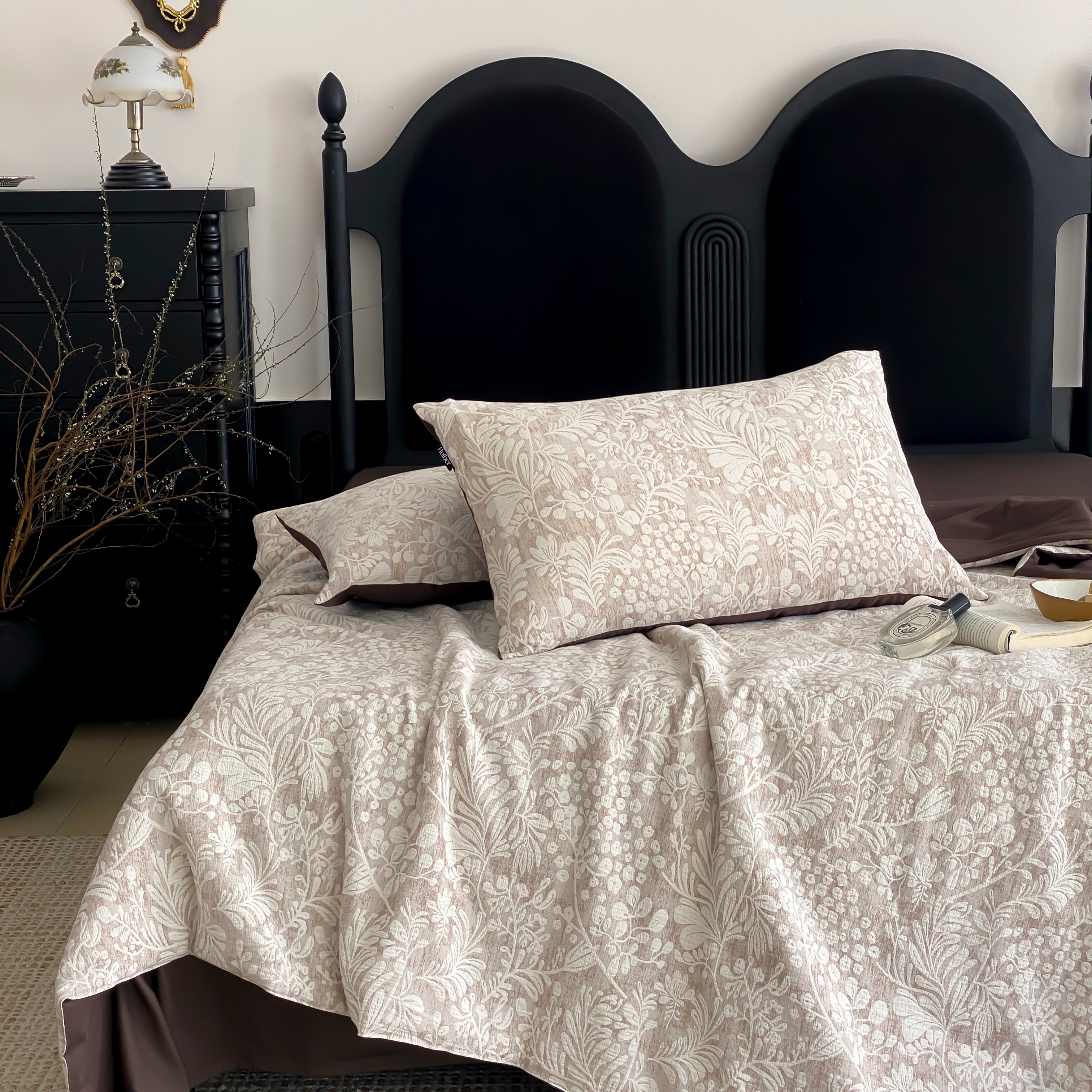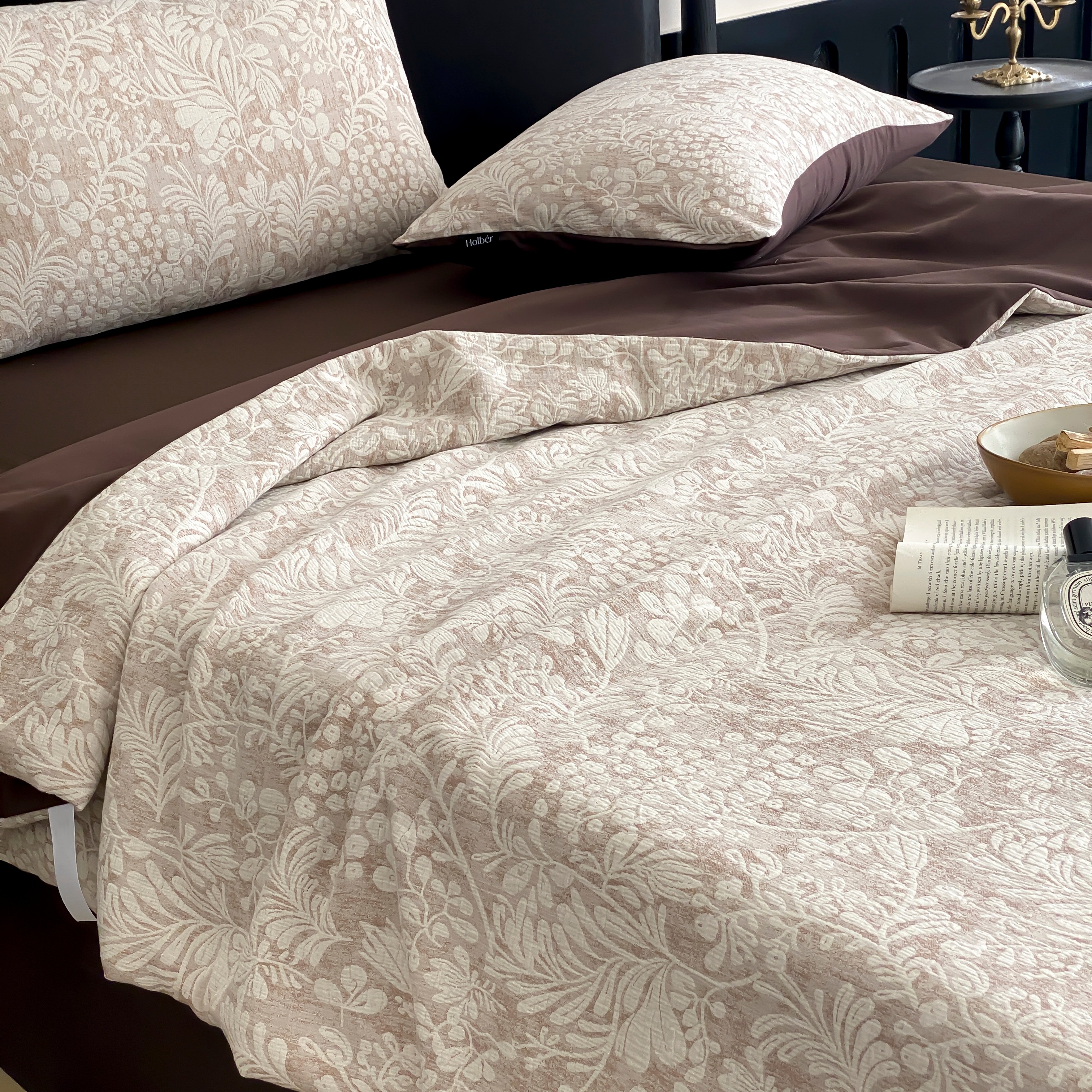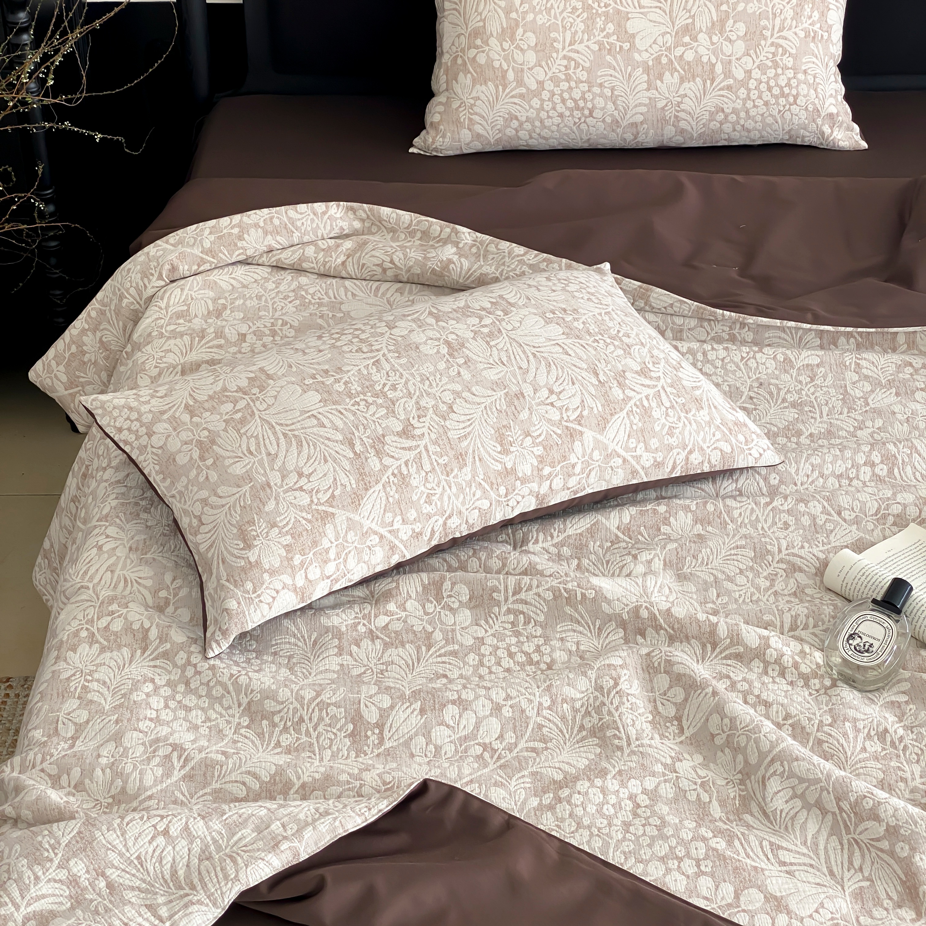 (总)赫帛 2026新款50s数码全棉轻磨毛四件套-暖叶,暖叶-粉色