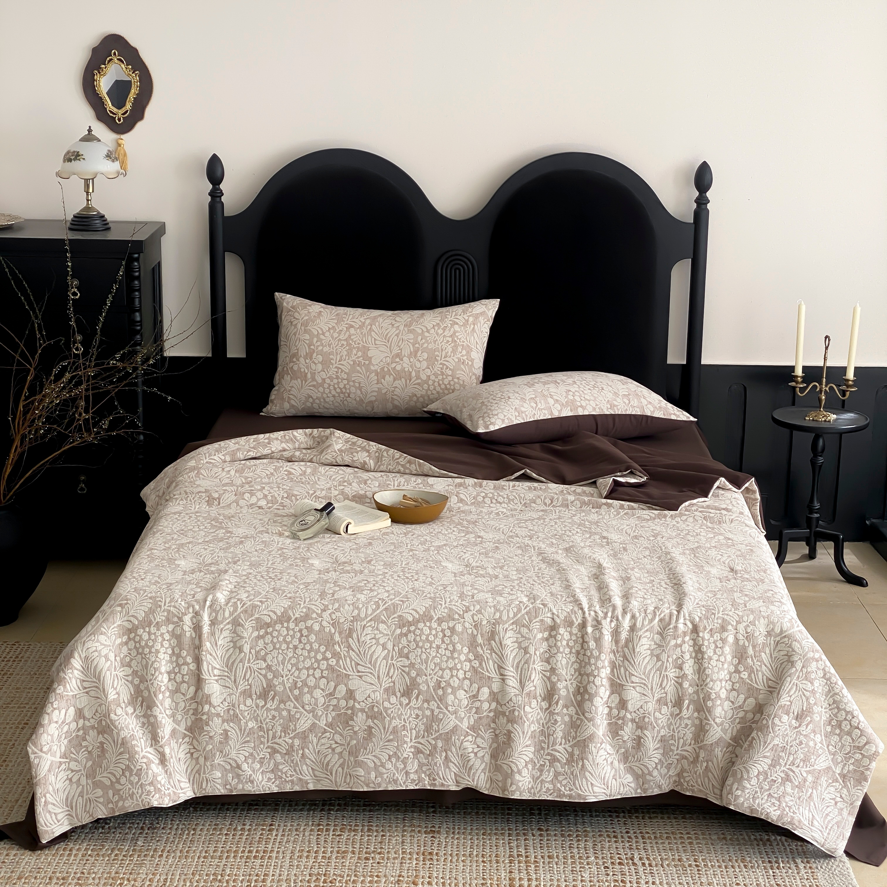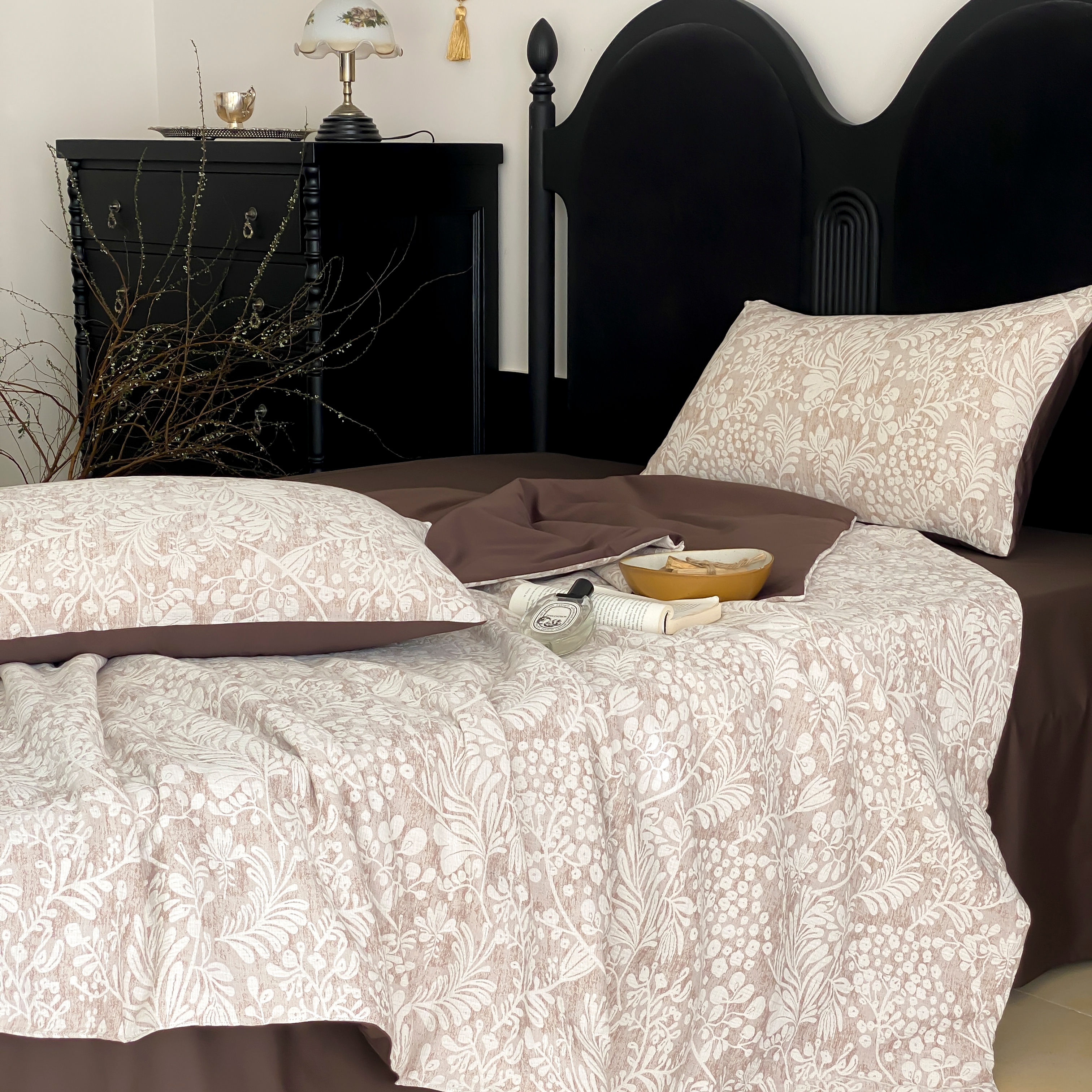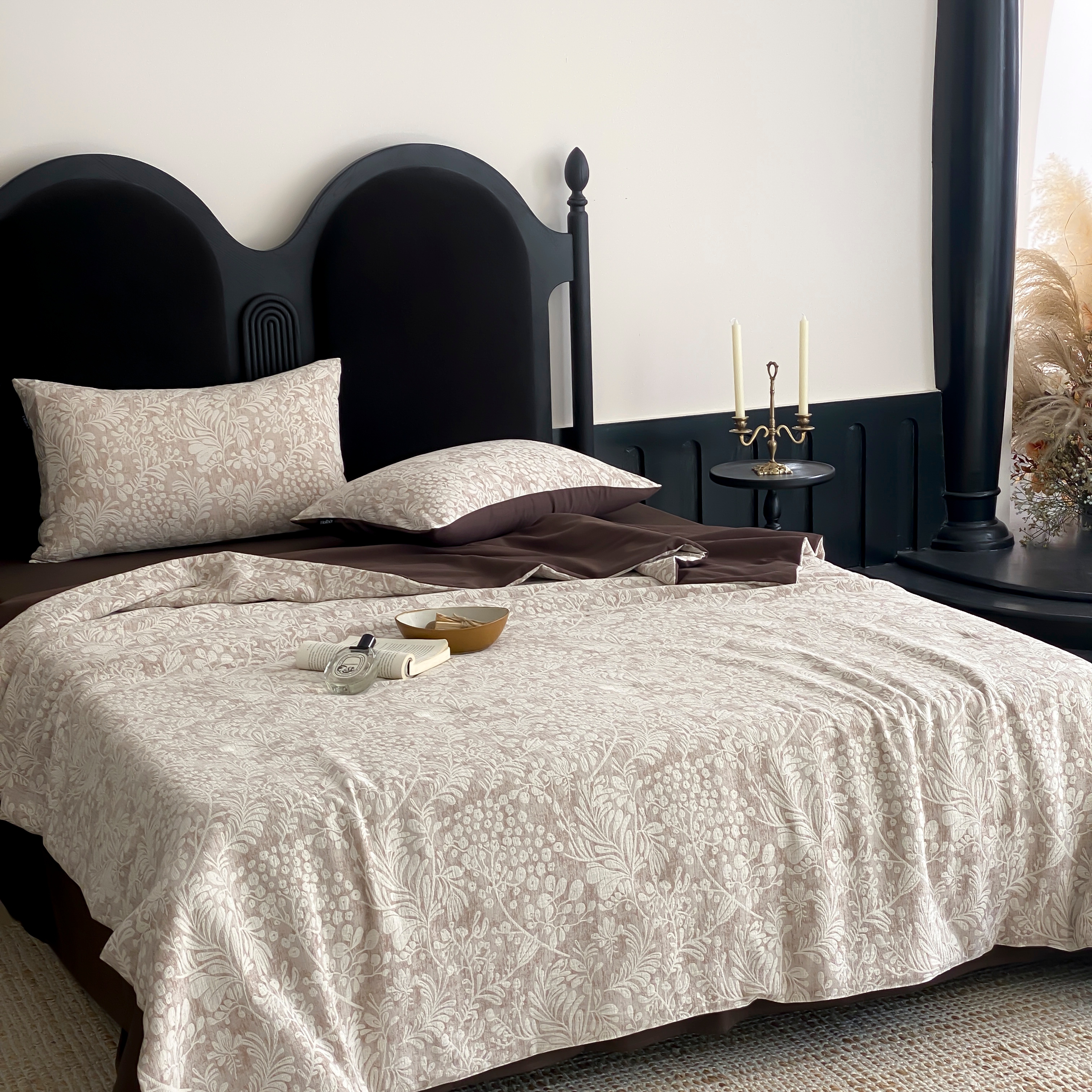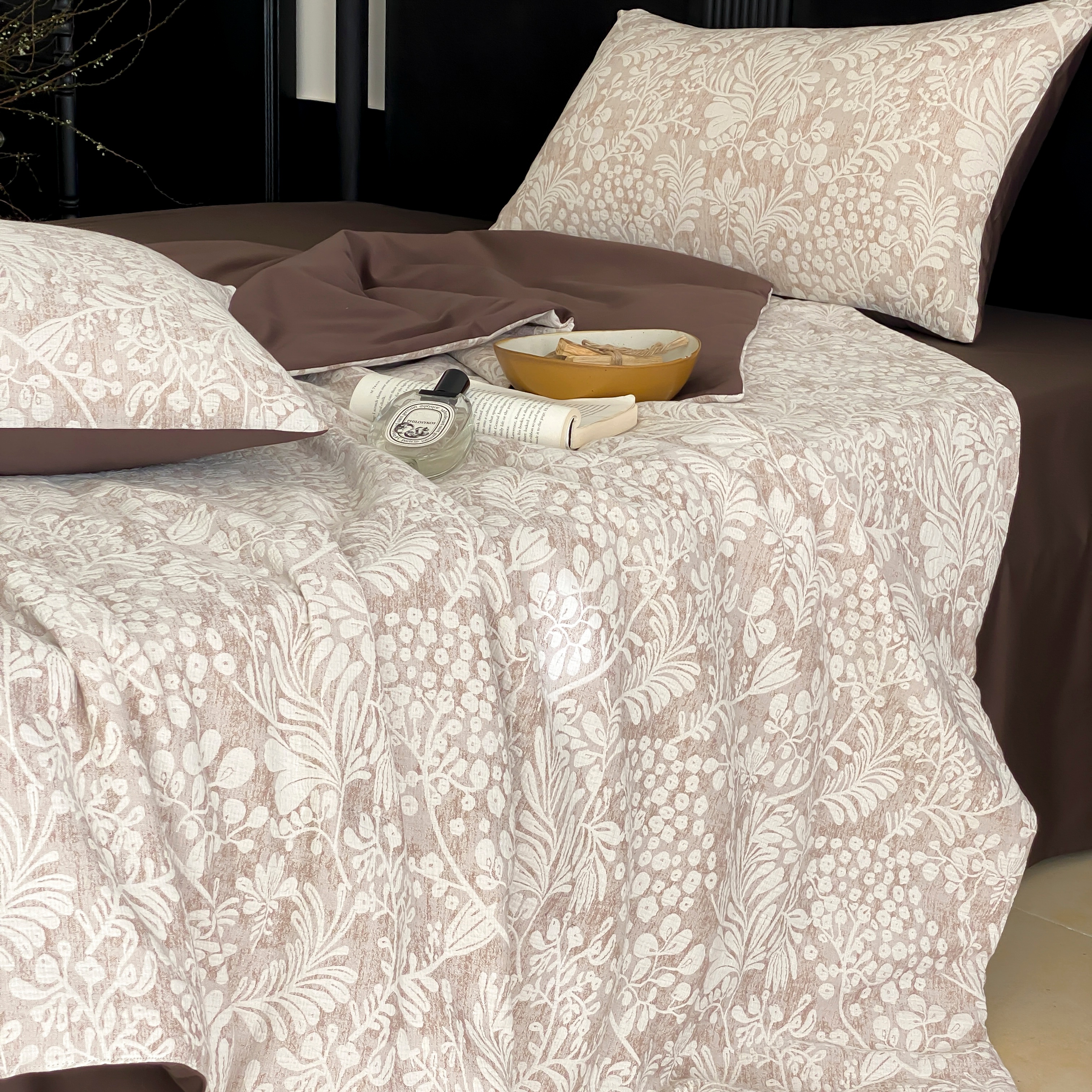 (总)赫帛 2026新款50s数码全棉轻磨毛四件套-暖叶,暖叶-粉色