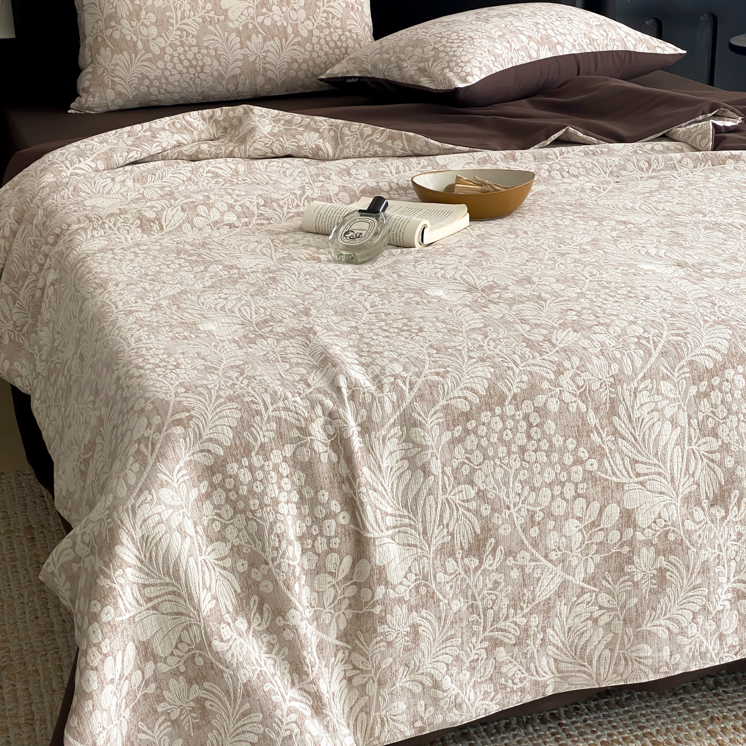 商品名称:赫帛 2025春夏新款全棉纯棉色织提花数码印花七草夏被夏凉被空调被 七草-绿色夏被
