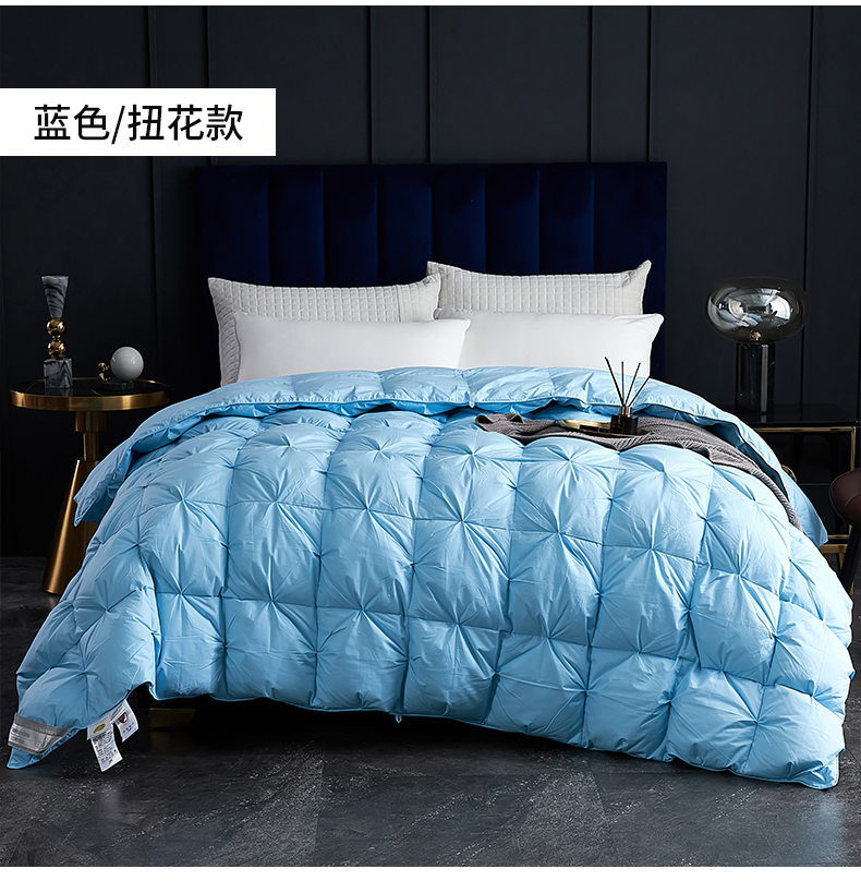• 91家纺网 家纺一手货源 找家纺 呆头鹅羽绒工厂店 2025新款全棉羽丝绒扭花被 白鹅绒鸭绒被子被芯羽绒工厂店 蓝色