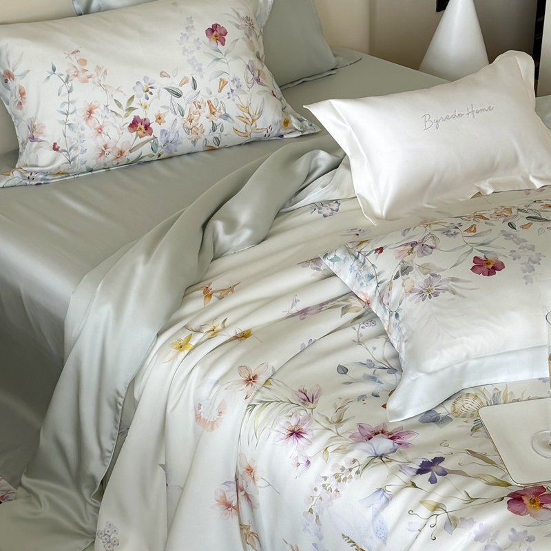 (总)馨蕊家居 2025新款春夏新品天丝印花80SLF奥地利兰精天丝夏被四件套-初见,夏被初见-蔷薇粉,夏被初见-氧气绿