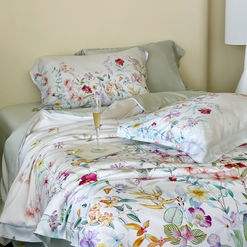 (总)馨蕊家居 2025新款春夏新品天丝印花80SLF奥地利兰精天丝四件套-初见,天丝初见-蔷薇粉,天丝初见-氧气绿