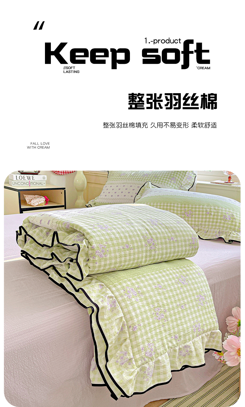 • 91家纺网 家纺一手货源 找家纺 (总)暖芯优选 2025新款木棉双层纱ins少女心可爱系加厚豆豆冬被四件套床盖三件套暖梦系列(小红书推荐),格子樱桃,点点爱心,格子草莓,花花兔兔,快乐小新,绿色条格,十里桃花,童话世界,音乐篇章,组合