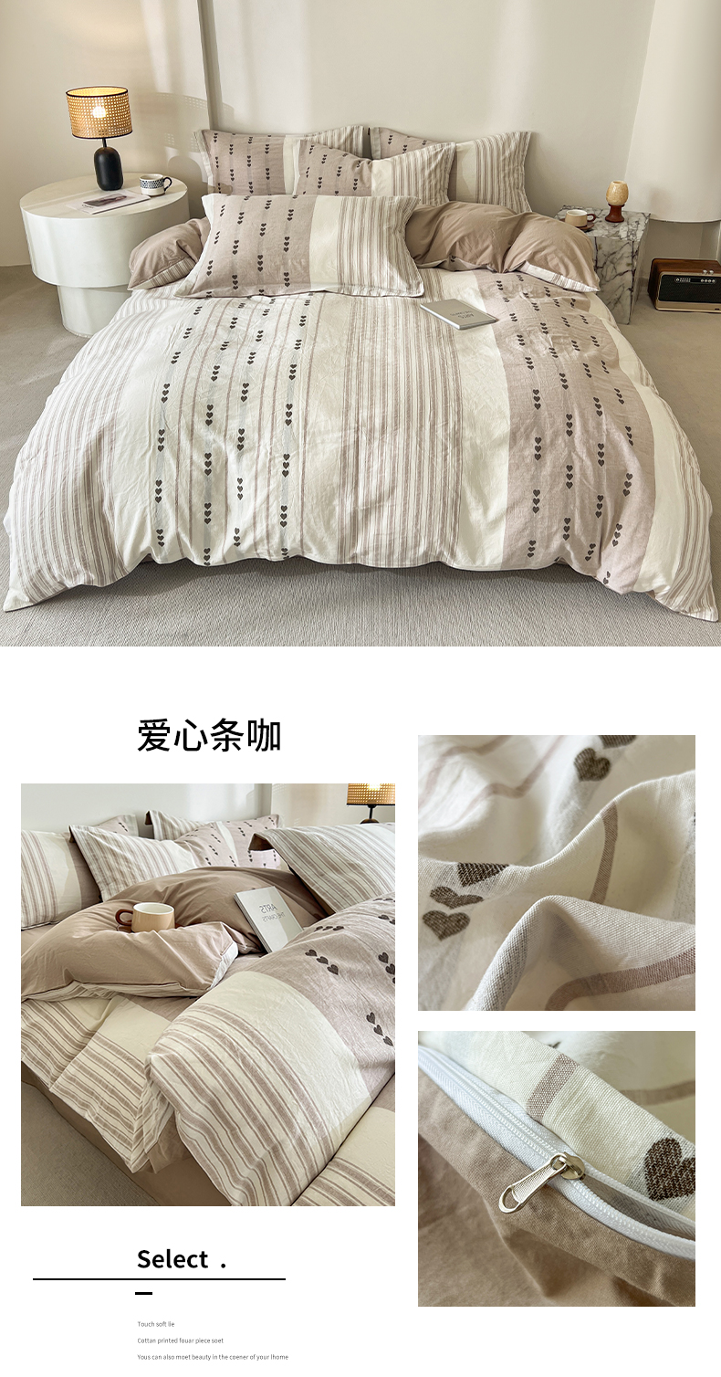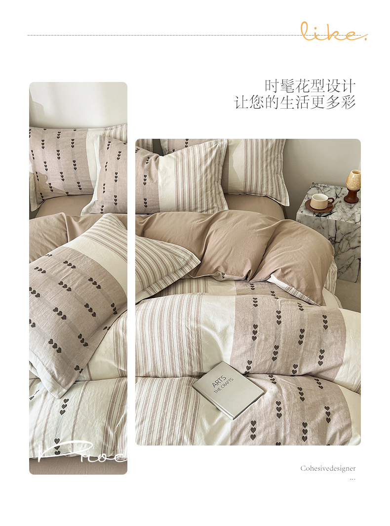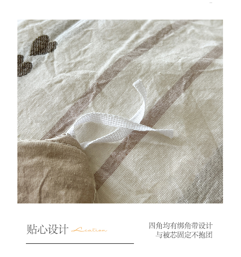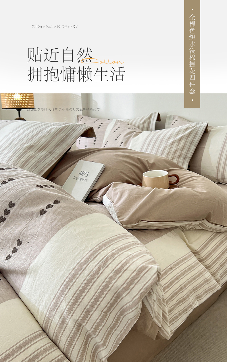 商品名称:小懒猪2025色织水洗棉提花四件套 爱心条咖