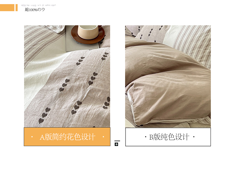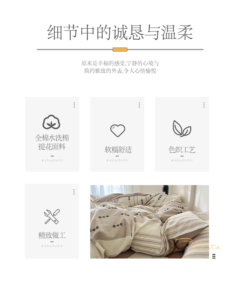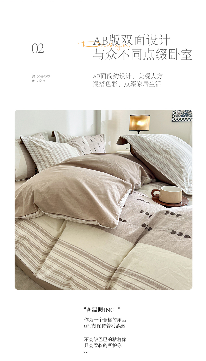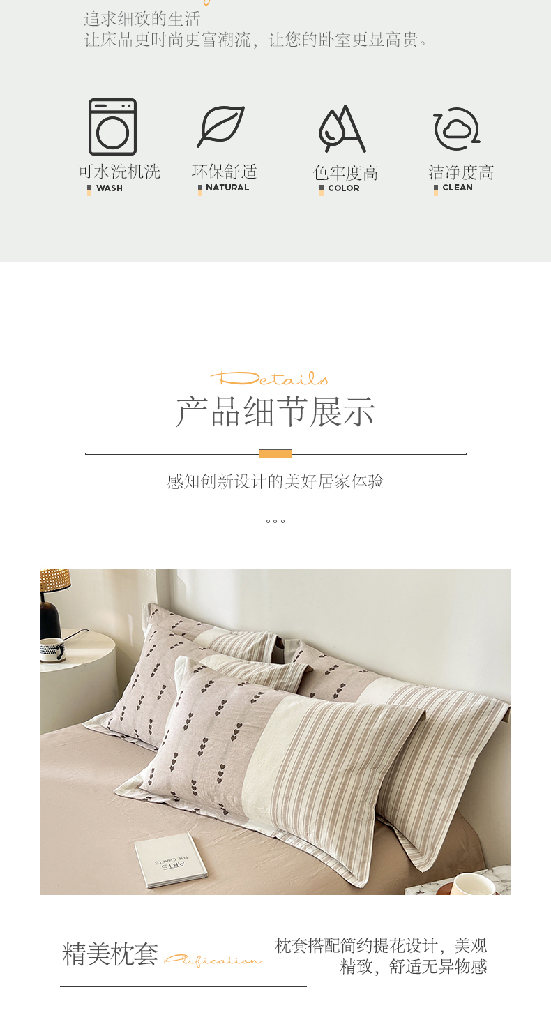 商品名称:小懒猪2025色织水洗棉提花四件套 爱心条咖