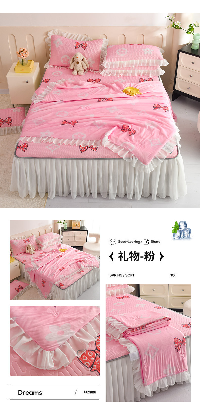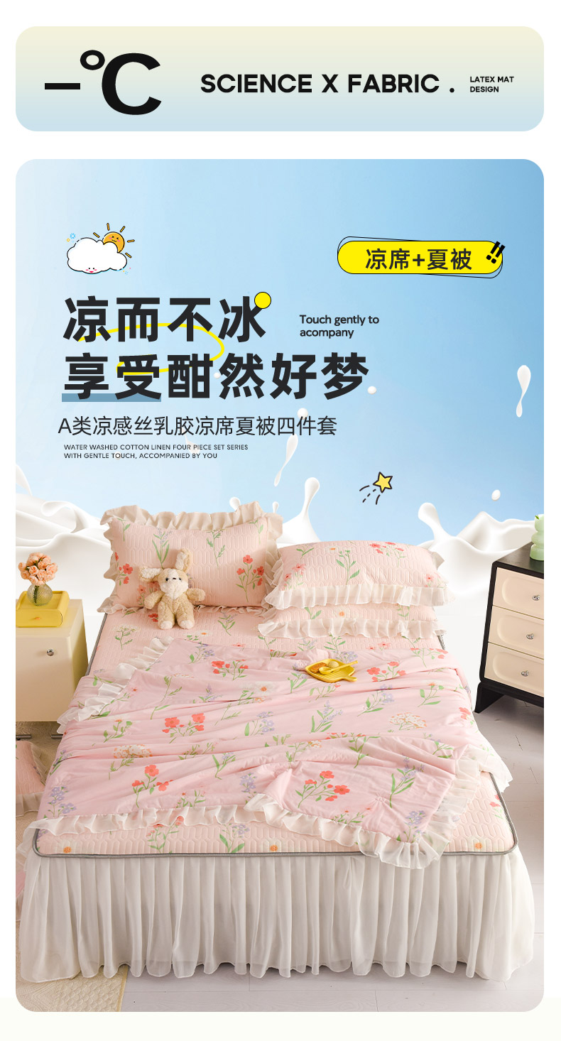 当前位置: 91家纺网 > 商品网购 > 床品套件 > 四件套 > 夏被四件套 > 悦织湾家纺 2025新款A类凉感丝床裙款乳胶凉席席子夏被夏凉被空调被四件套 波点-黑