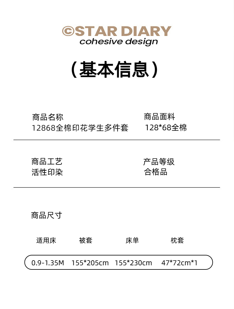 三件套(被套155*205 床单155*230 枕套47*72) | ¥59.00 |