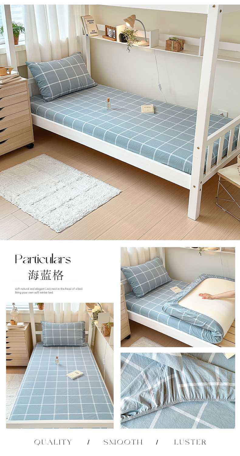 商品名称:玖弘家居 2025新款全棉色织水洗棉床笠系列 海蓝格