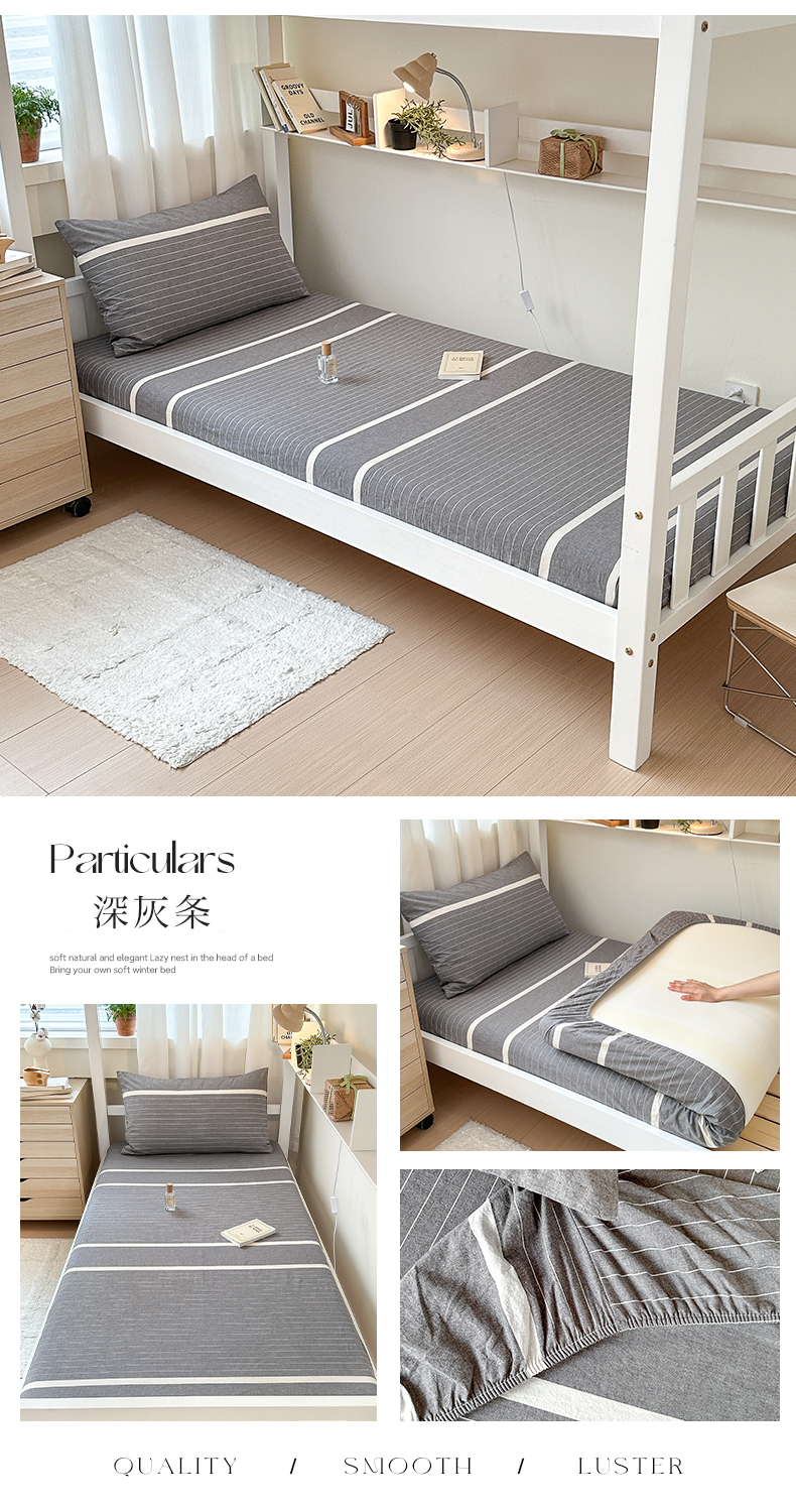 玖弘家居 2025新款全棉色织水洗棉床笠系列 深灰条