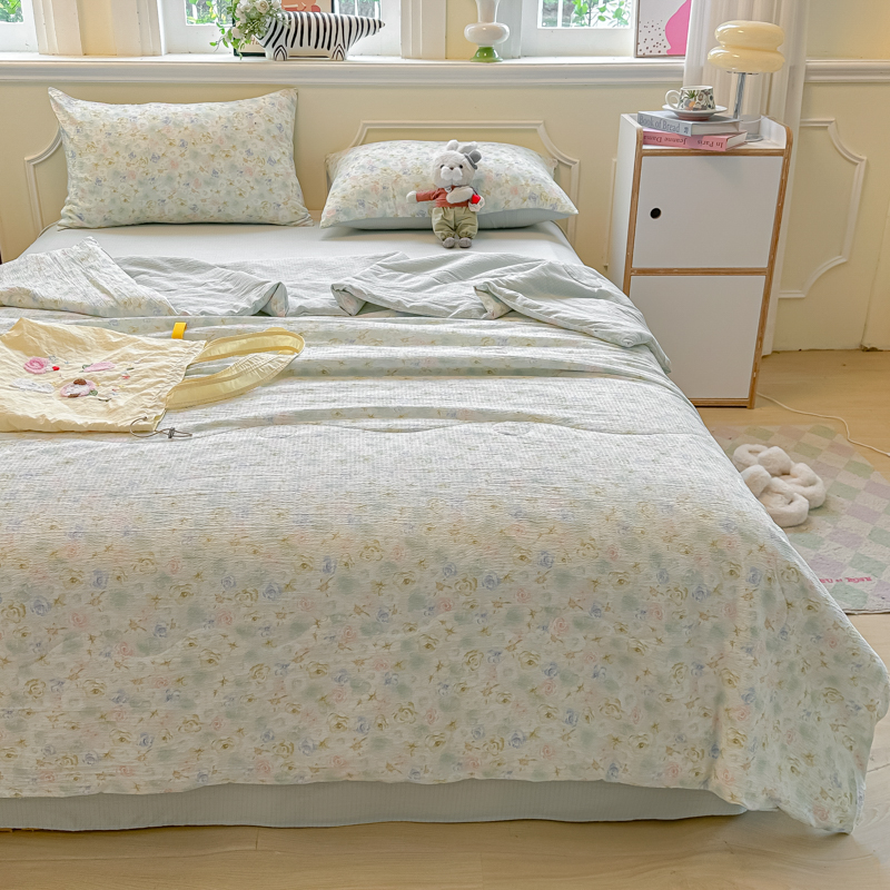 玉海棠家纺 2025新款云感双层纱暗合夏被夏凉被空调被四件套 蓝玫瑰