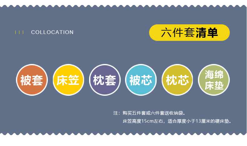 【海绵床垫床笠款】90x190床4斤棉花被六件套 | ¥228.00 |