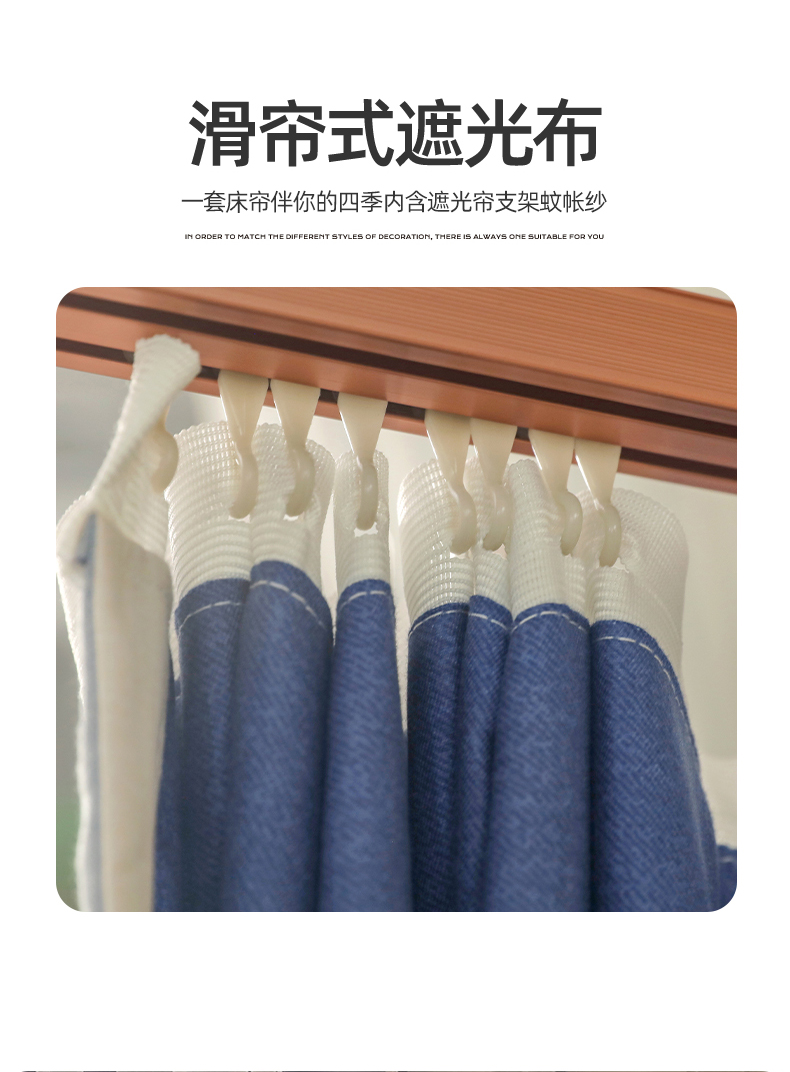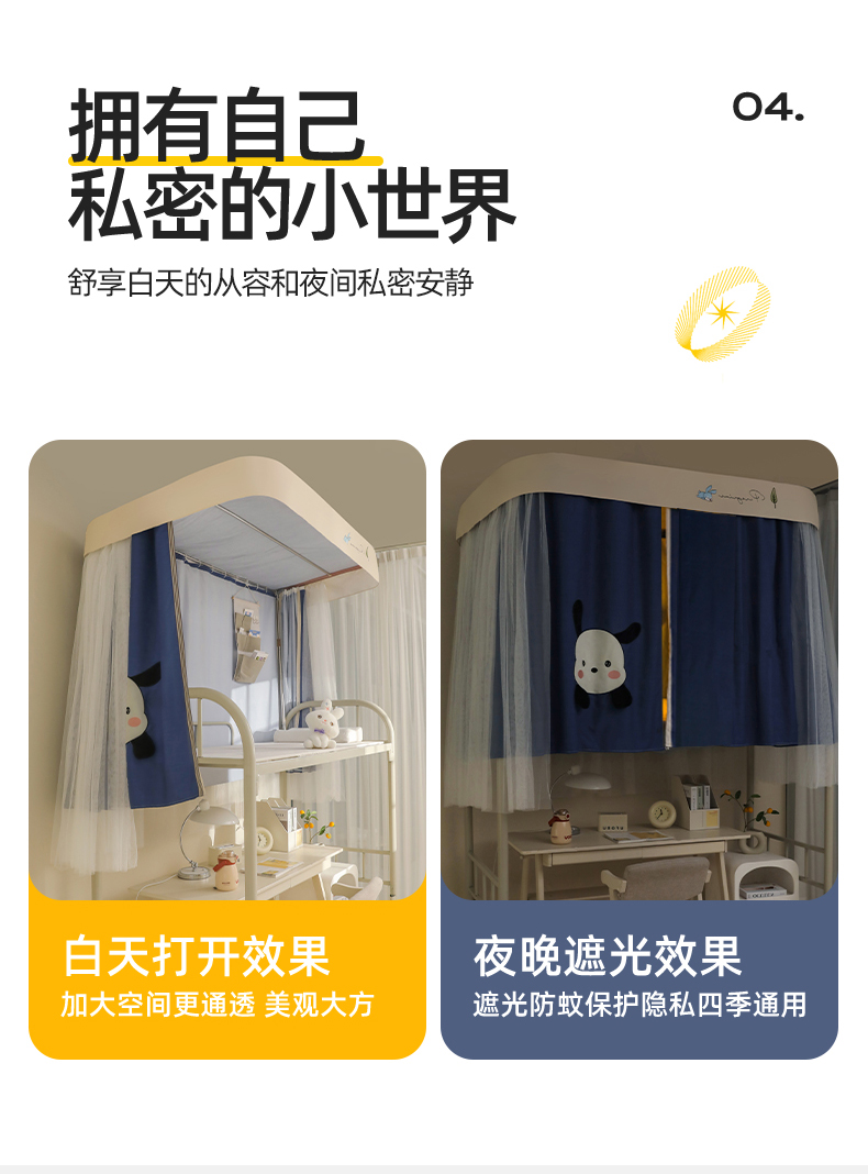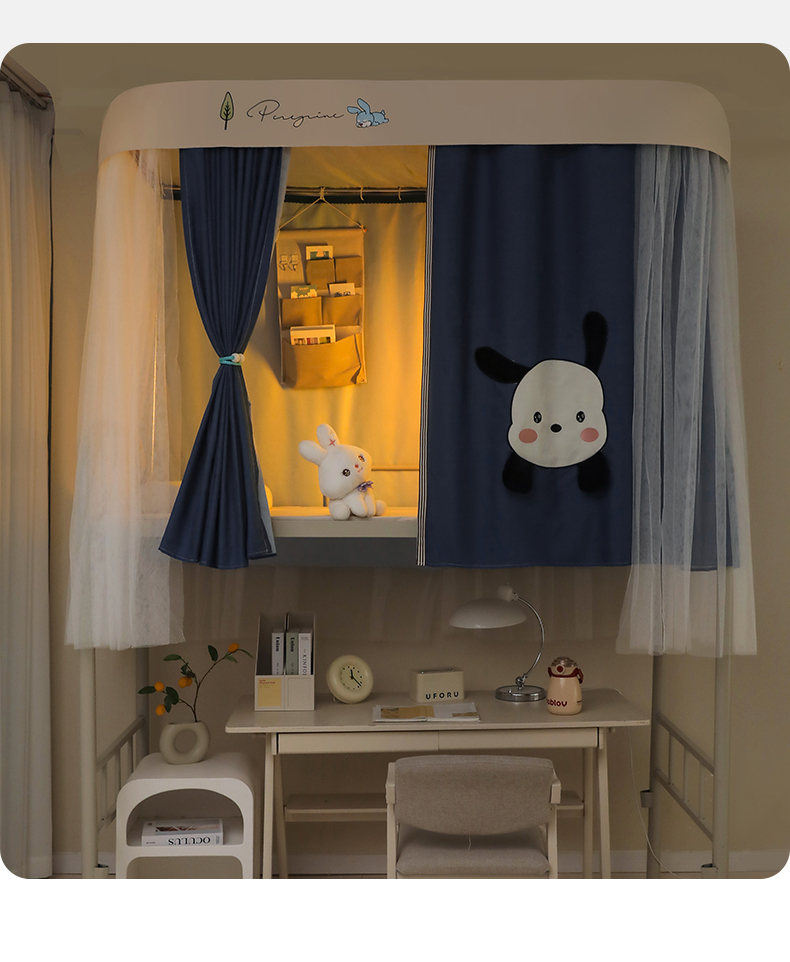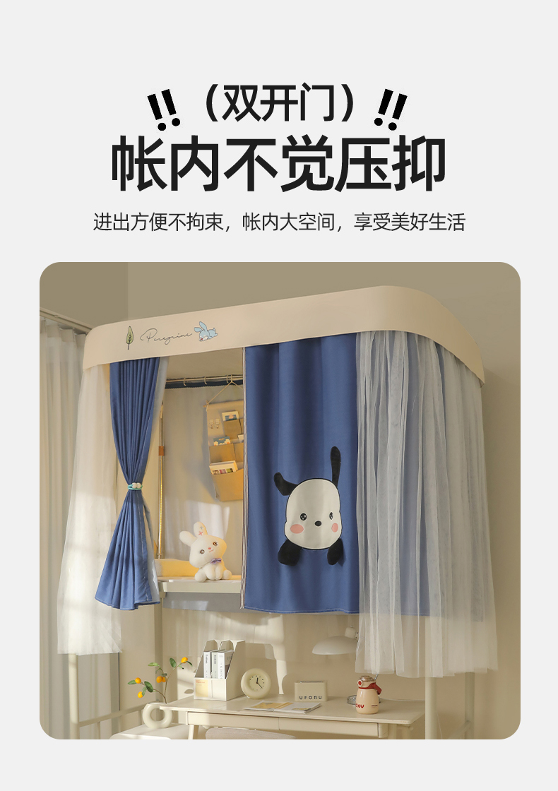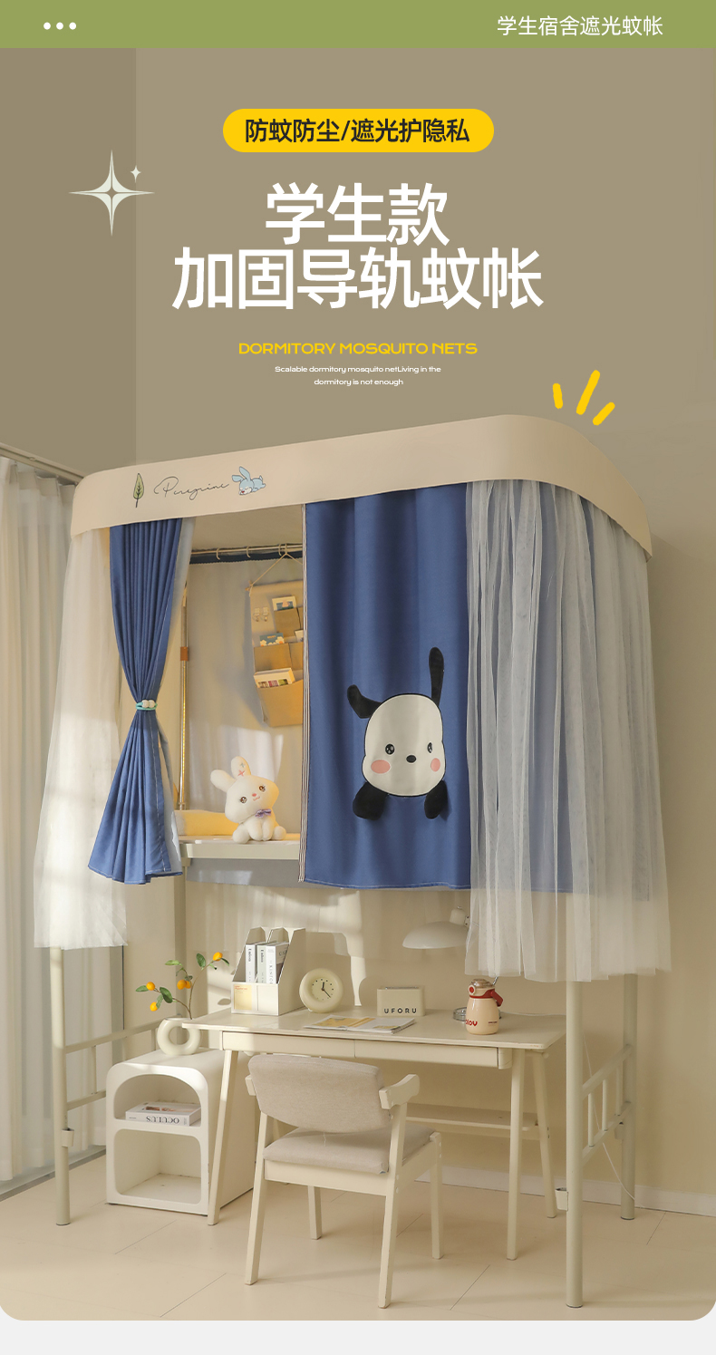 商品名称:都市缘蚊帐 2025新款学生宿舍导轨遮光床帘上下铺贴布卡通蚊帐0.8m 0.9m床 呆萌狗-藏青