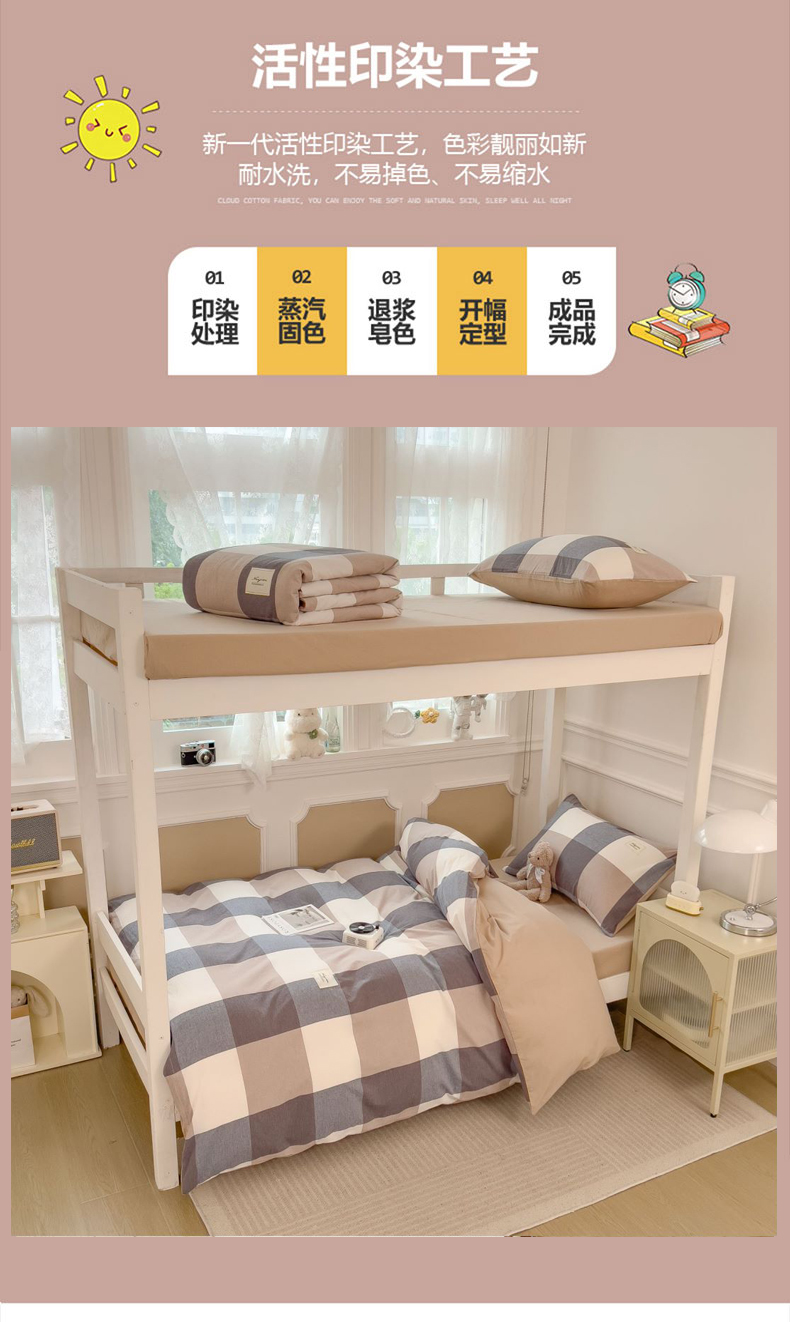 商品名称:宝士康家纺 2025春夏新款简约水洗棉学生三件套宿舍三件套上下铺三件套套件学生六件套套件(床单款) 英伦蓝