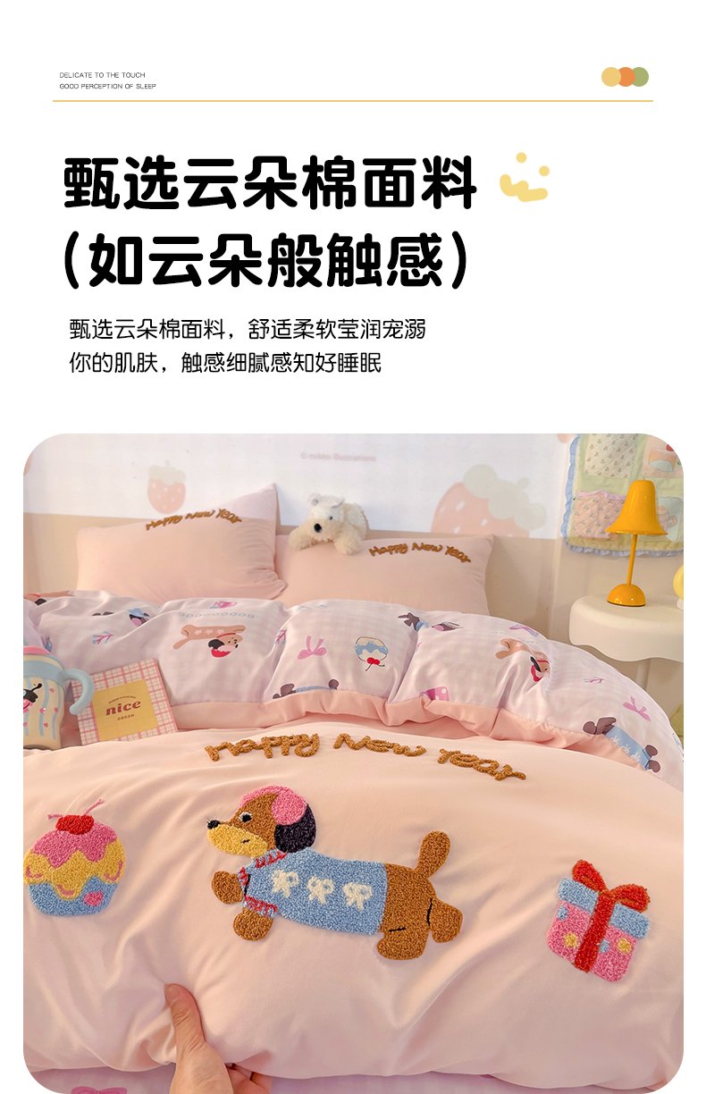 当前位置: 91家纺网 > 商品网购 > 床品套件 > 四件套 > 其它四件套 > 云木里 2025新款云朵棉毛巾绣印花四件套 欢乐的卡皮