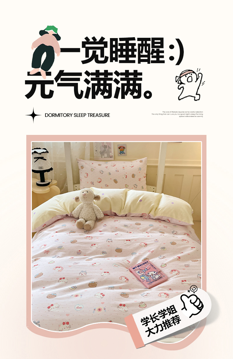 当前位置: 91家纺网 > 商品网购 > 床品套件 > 三件套 > 吉象家纺 2025新款12868高支密全棉印花学生季三件套 爱心猫咪酱