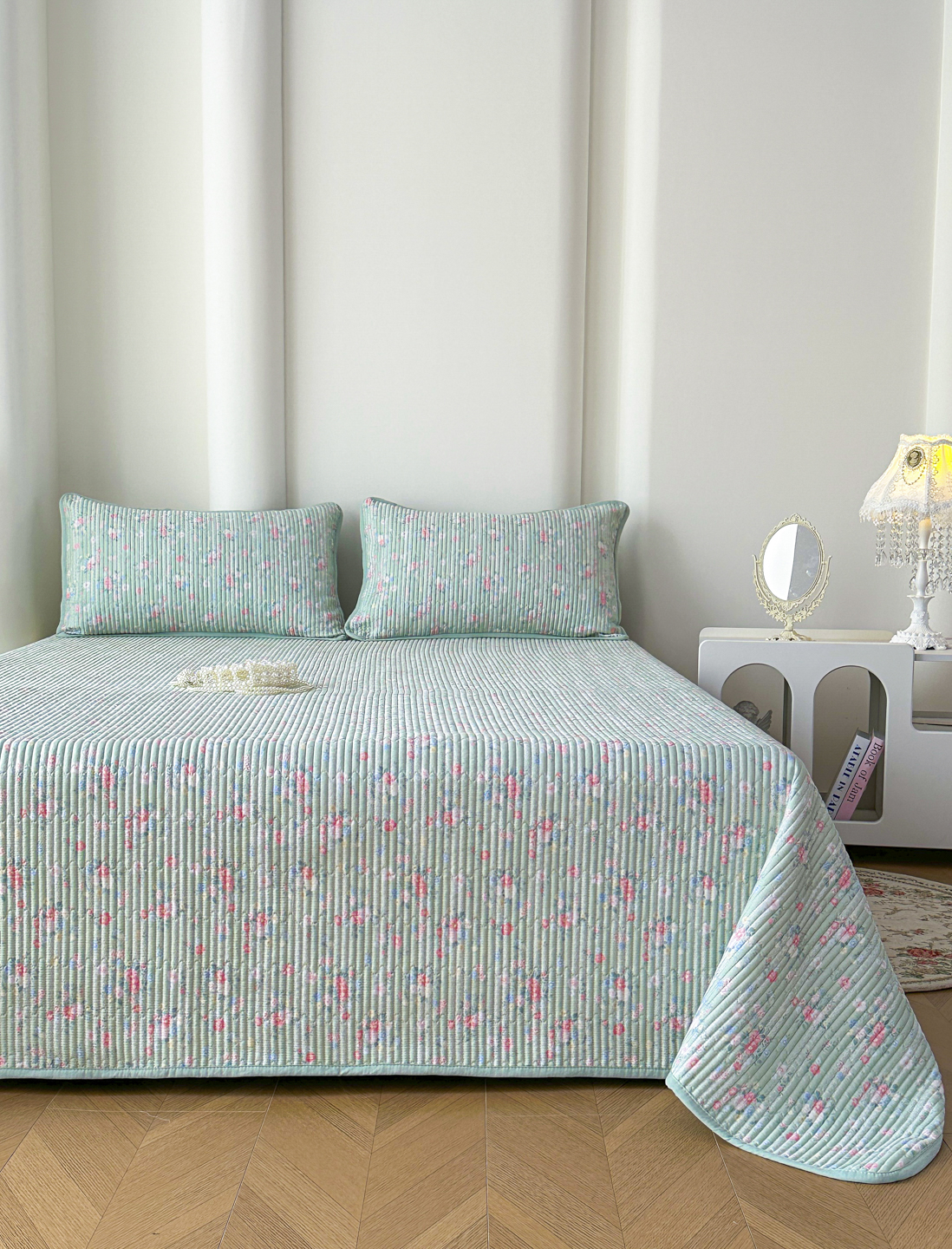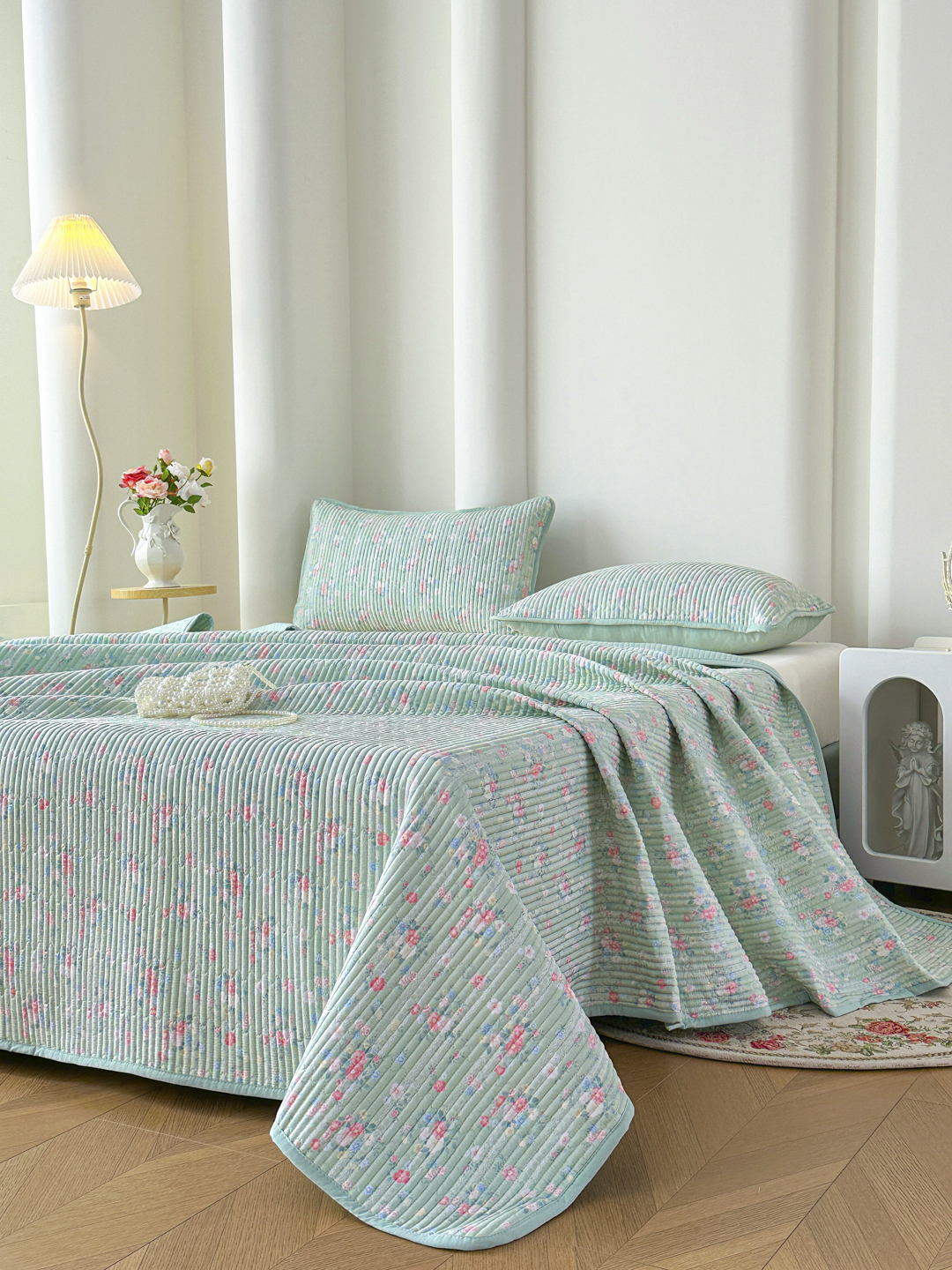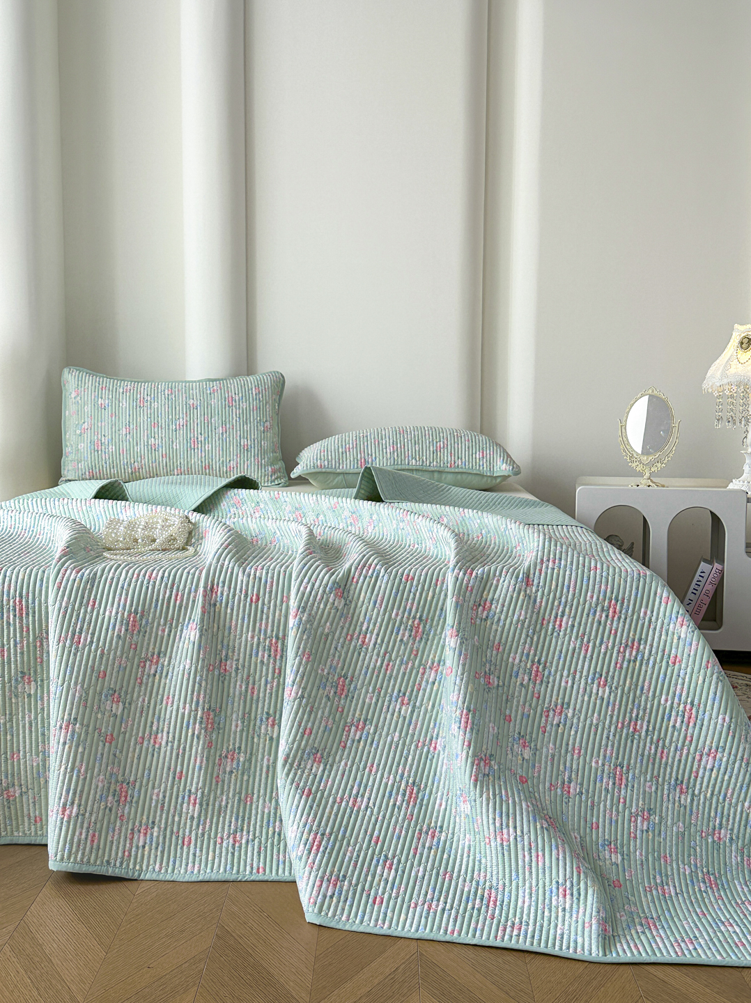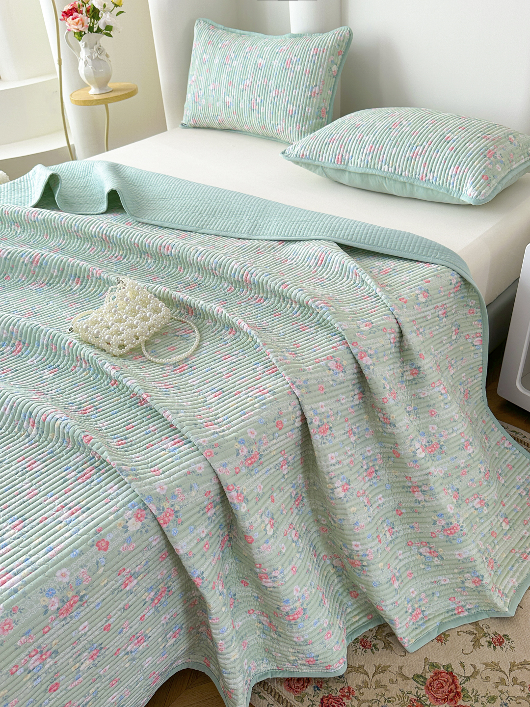 当前位置: 91家纺网 > 商品网购 > 床品套件 > 三件套 > 橘夏家纺 2025新款莱赛尔天丝轻奢风多功能床盖三件套软凉席盖毯 梦幻-绿