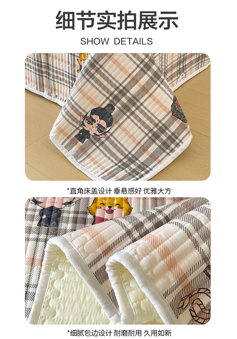 当前位置: 91家纺网 > 商品网购 > 床上用品 > 床盖 > 金鑫汇家纺2025新款A类全棉绗缝夹棉印花床盖 无畏申公豹·咖