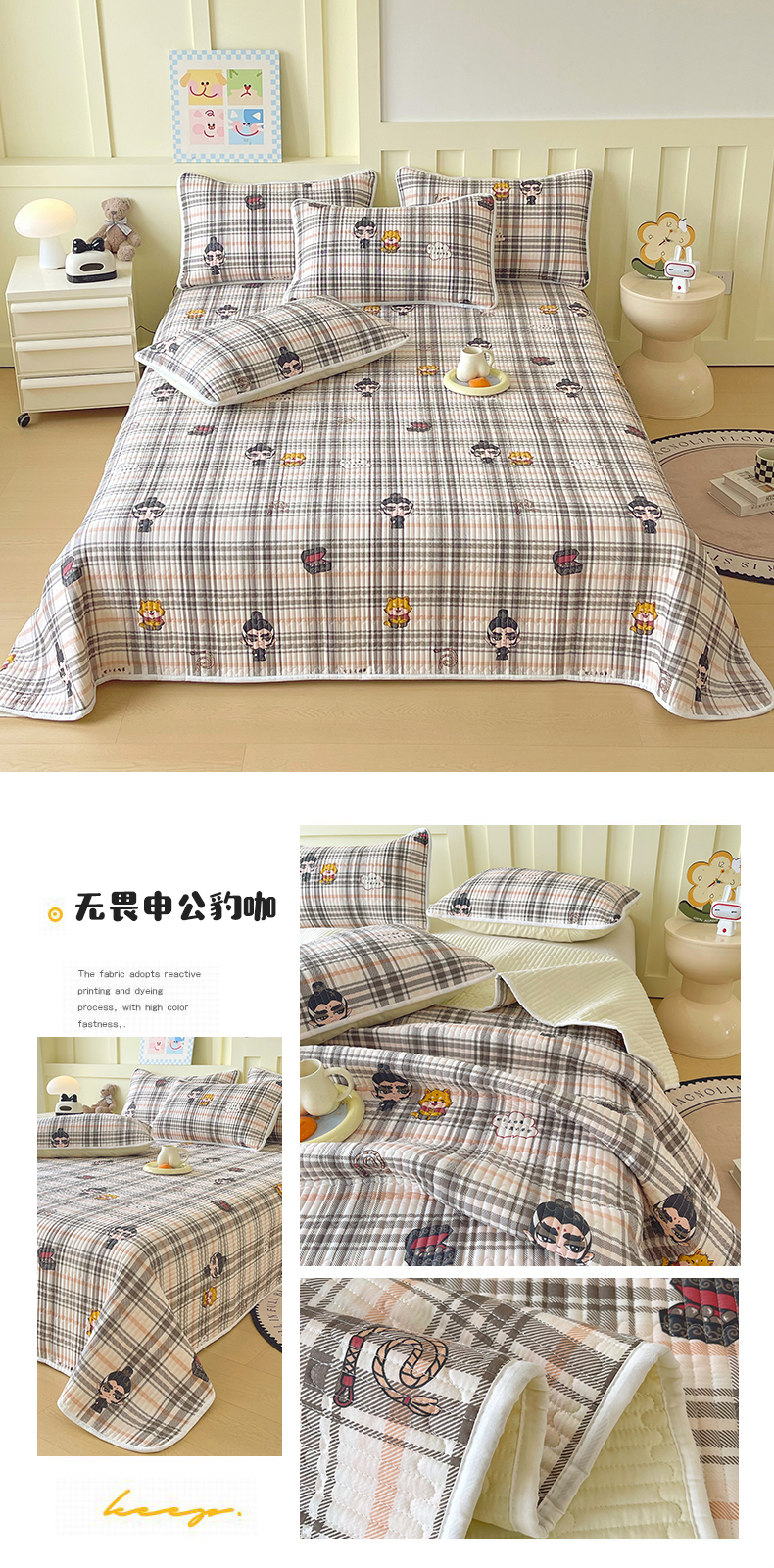 金鑫汇家纺2025新款A类全棉绗缝夹棉印花床盖 无畏申公豹·咖