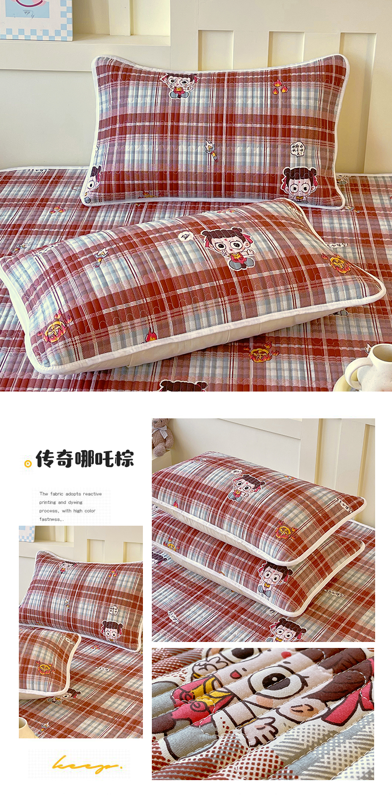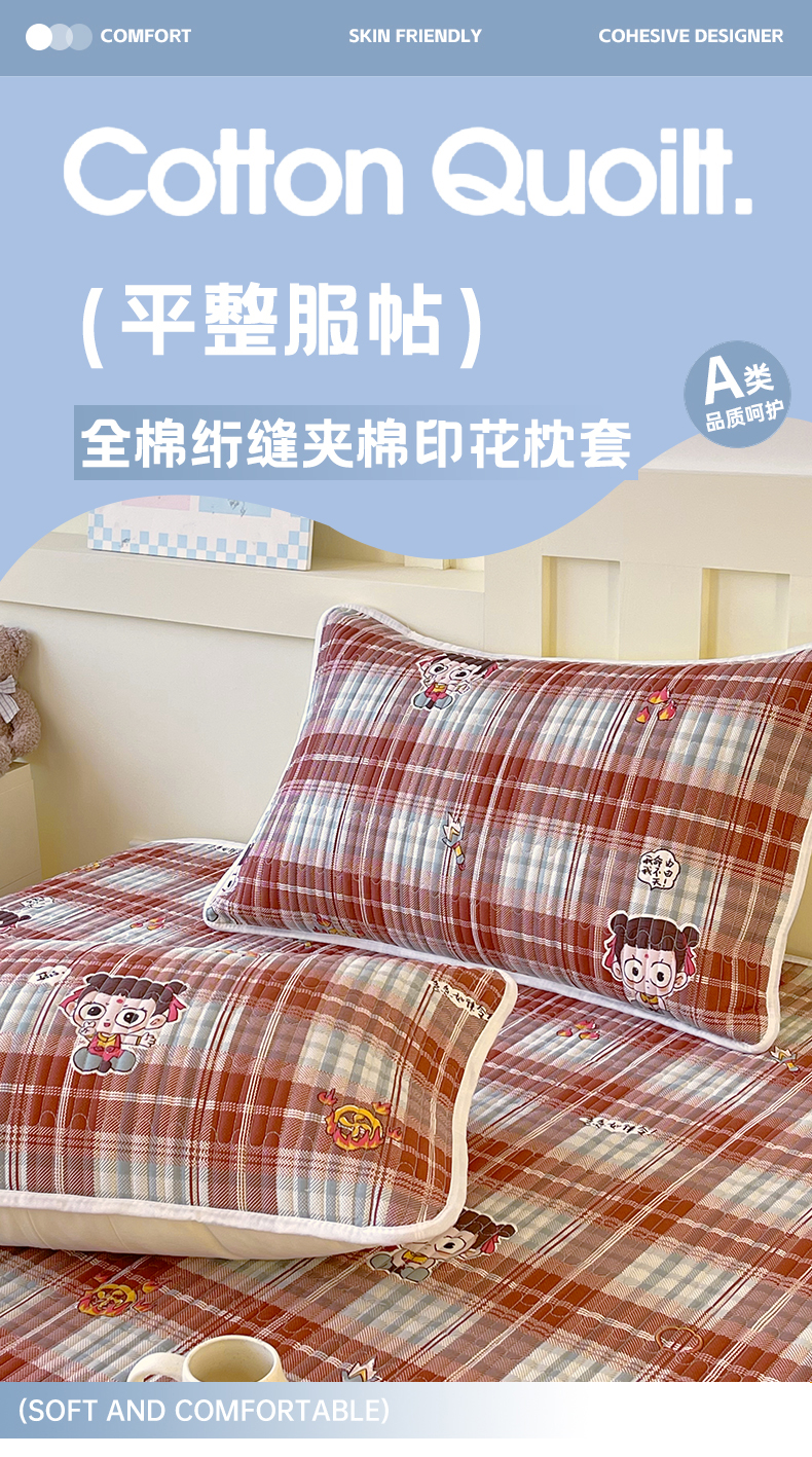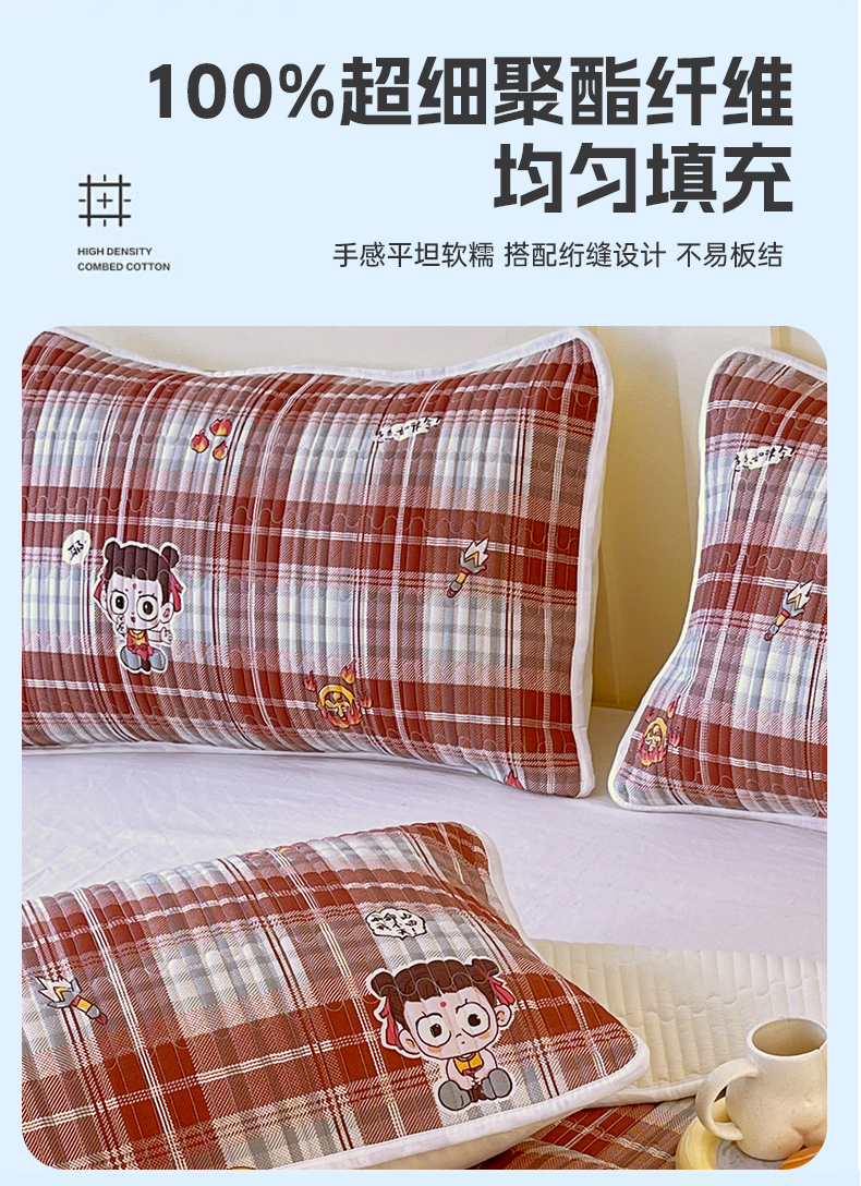 商品名称:金鑫汇家纺 2025新款A类全绗缝夹棉印花枕套 传奇哪吒·棕