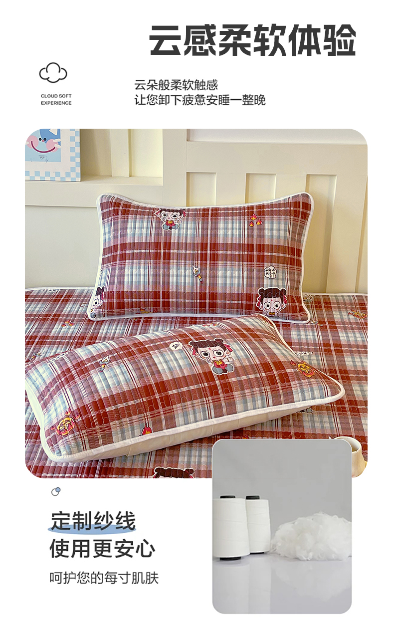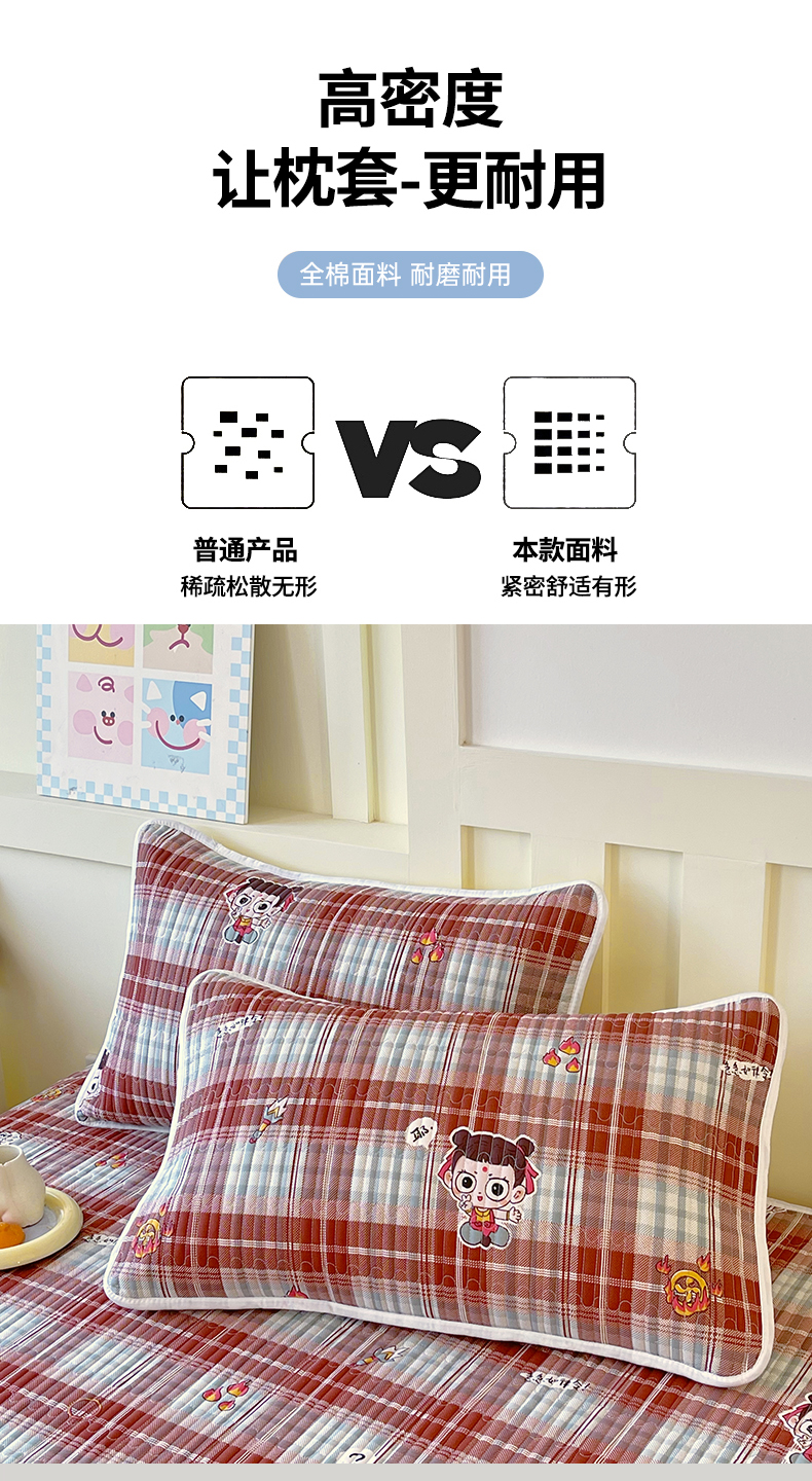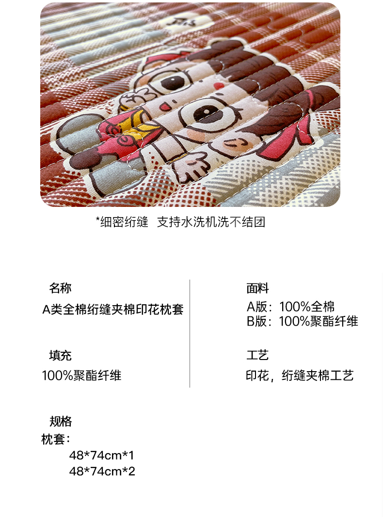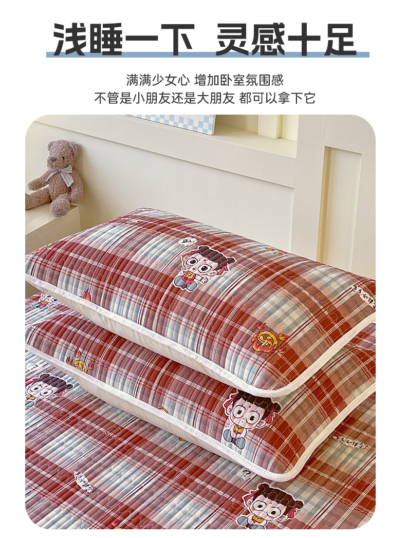 商品名称:金鑫汇家纺 2025新款A类全绗缝夹棉印花枕套 传奇哪吒·棕