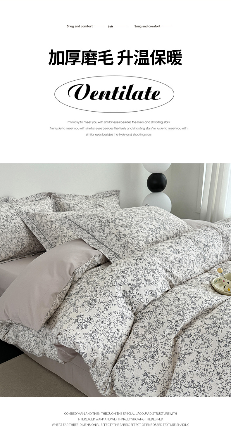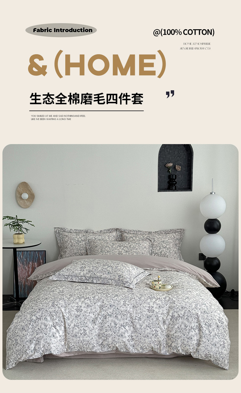 当前位置: 91家纺网 > 商品网购 > 床品套件 > 四件套 > 普通磨毛四件套 > 艾迪尚家纺 2025新款生态全棉纯棉磨毛印花四件套 樱花雪-灰