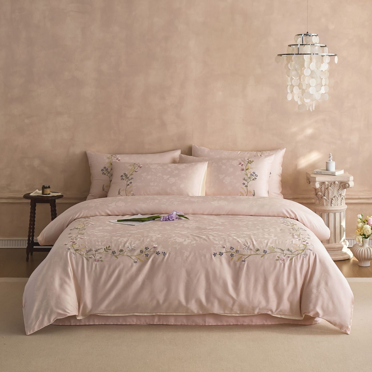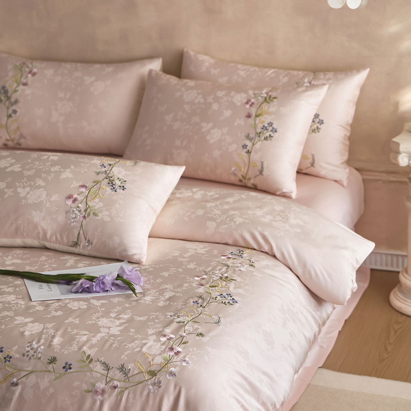(总)初拾 2025新款230g牛奶绒“高级感“绣花四件套—曼岛邂逅,曼岛邂逅-奶油粉,曼岛邂逅-气质灰,曼岛邂逅-香槟