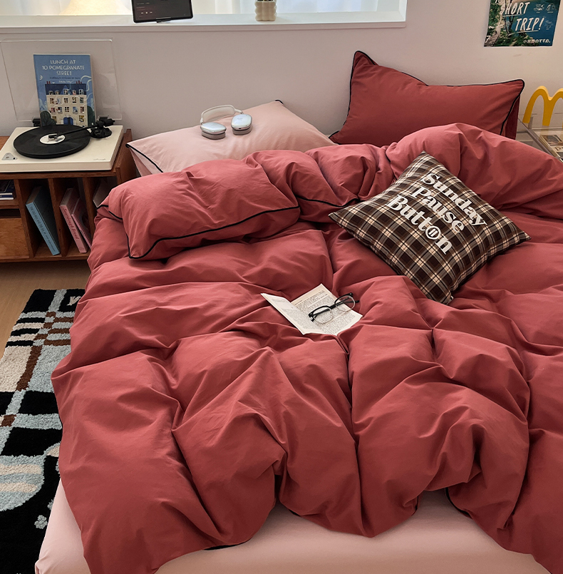 当前位置: 91家纺网 > 商品网购 > 床品套件 > 四件套 > 普通磨毛四件套 > 三朵家纺 2025新款50支加厚全棉纯棉磨毛混搭四件套-美拉德系列 维尼红