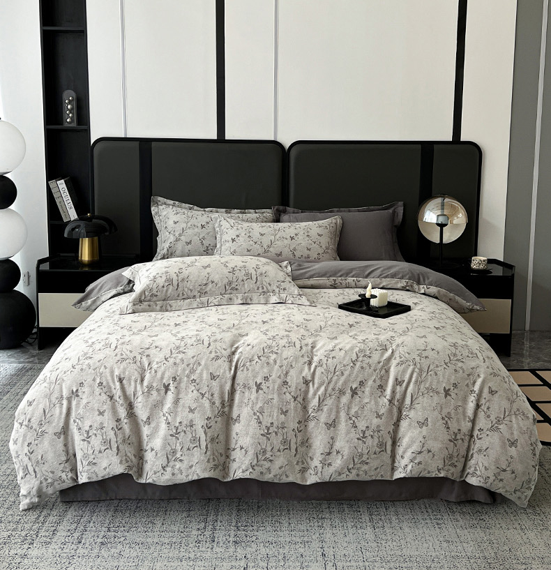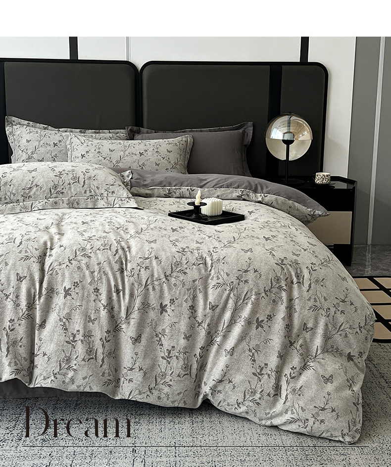 当前位置: 91家纺网 > 商品网购 > 床品套件 > 四件套 > 全棉普通四件套 > 锦彩家居 2025新款A类60支全棉纯棉色织提花四件套-复古风系列 蝴蝶花影-灰