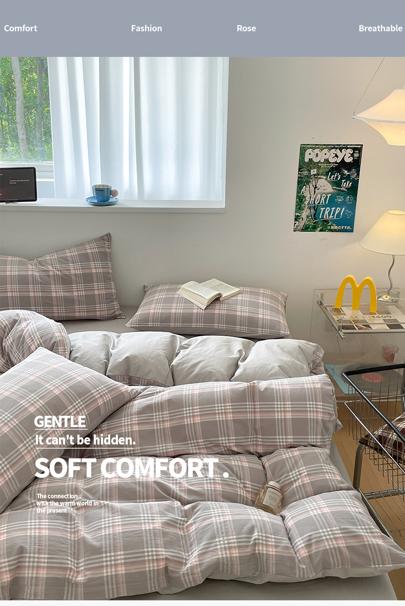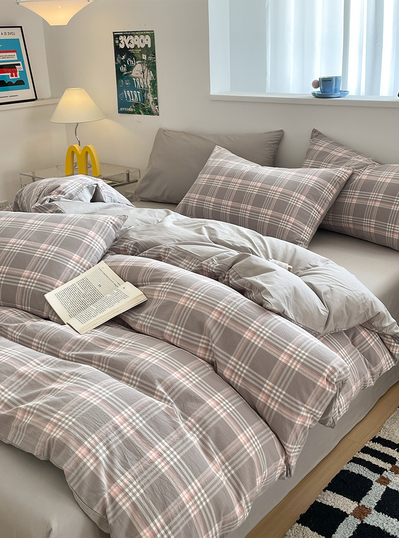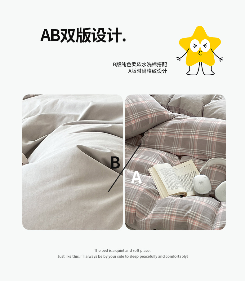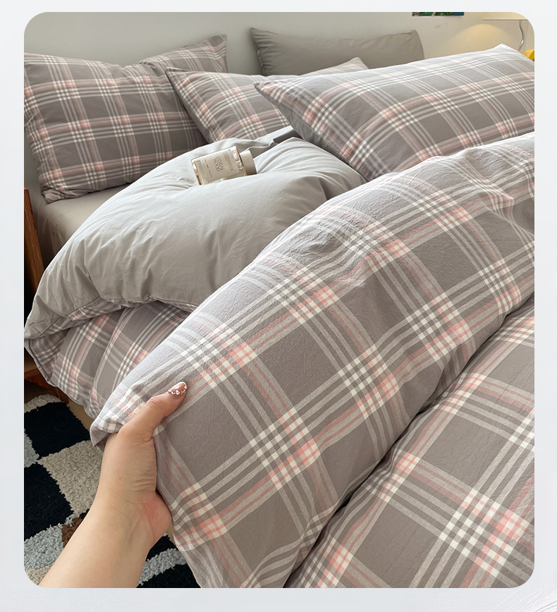 当前位置: 91家纺网 > 商品网购 > 床品套件 > 四件套 > 水洗棉四件套 > ab家纺 2025新款40支色织a类全棉水洗棉四件套 富士格-灰