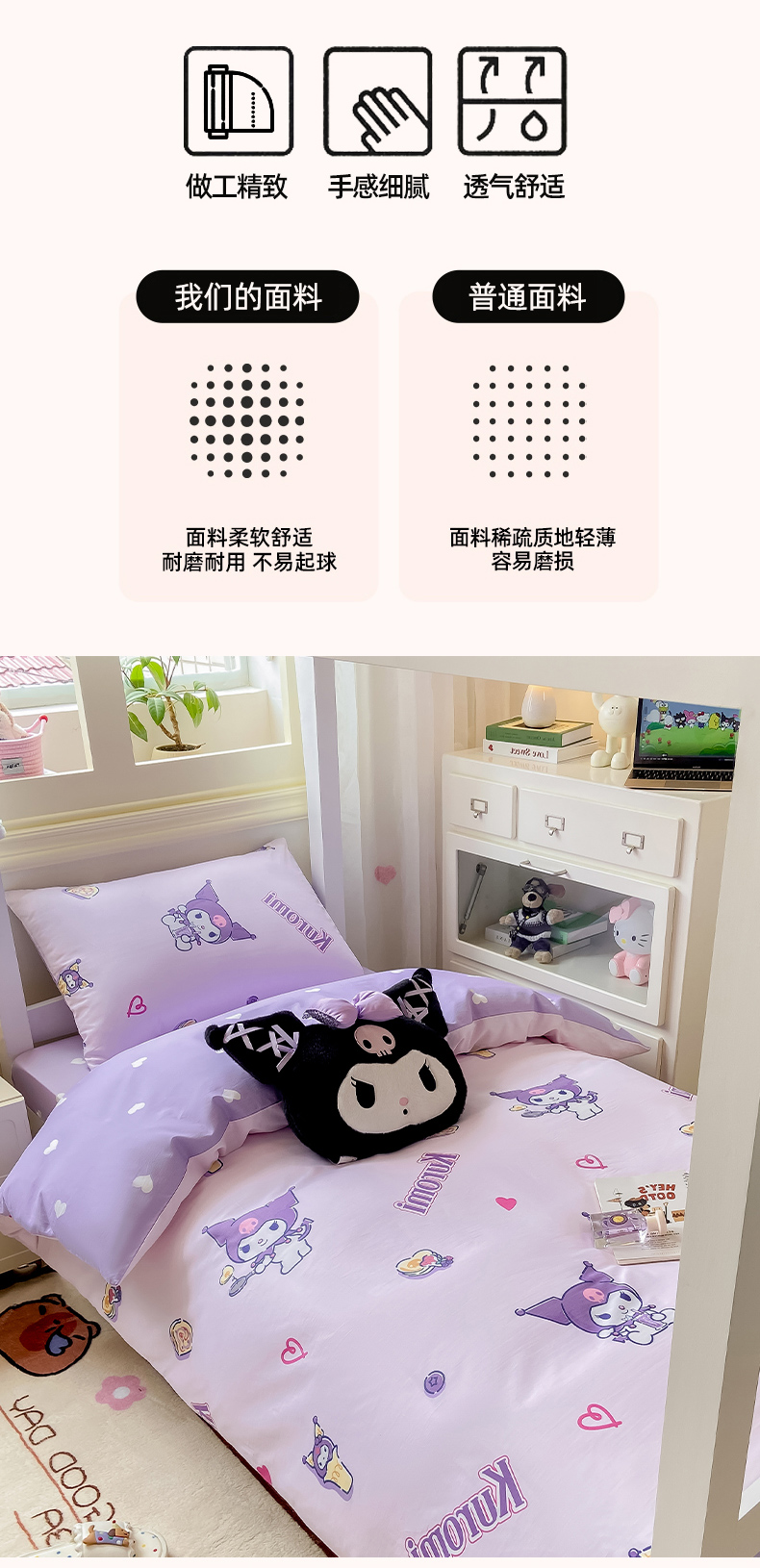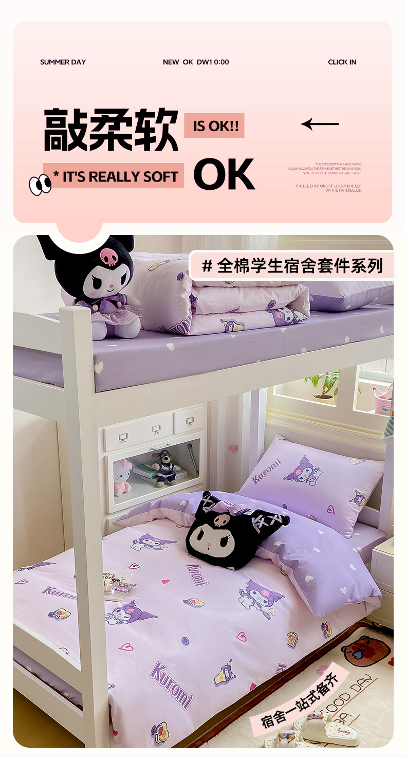 当前位置: 91家纺网 > 商品网购 > 床品套件 > 三件套 > 博雅 2025春夏新款三丽鸥全棉纯棉卡通学生宿舍三件套上下铺三件套-小版 多彩库洛米
