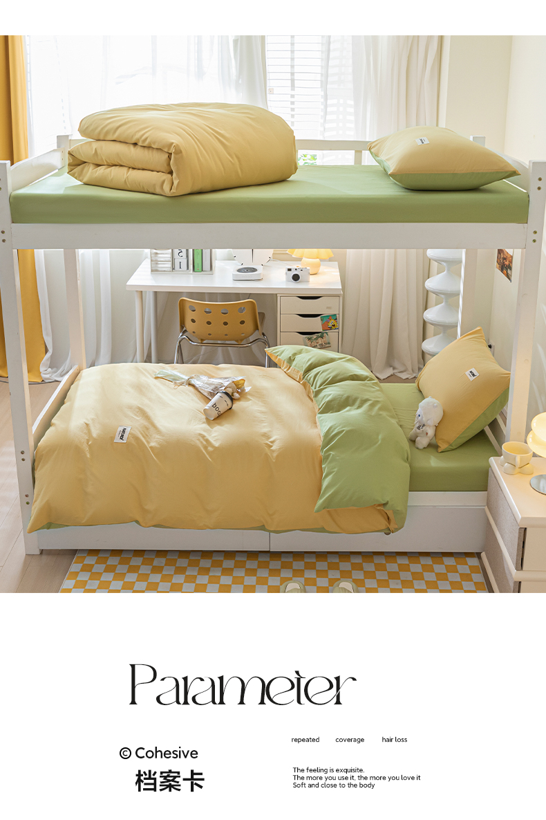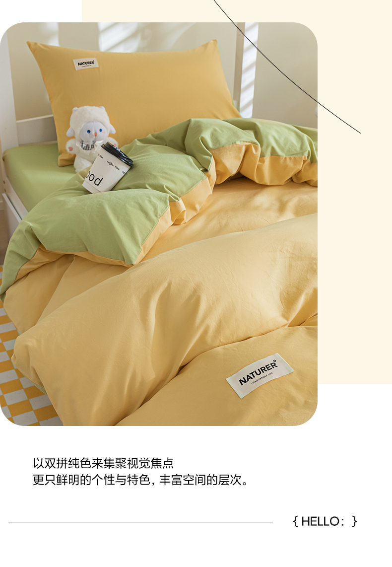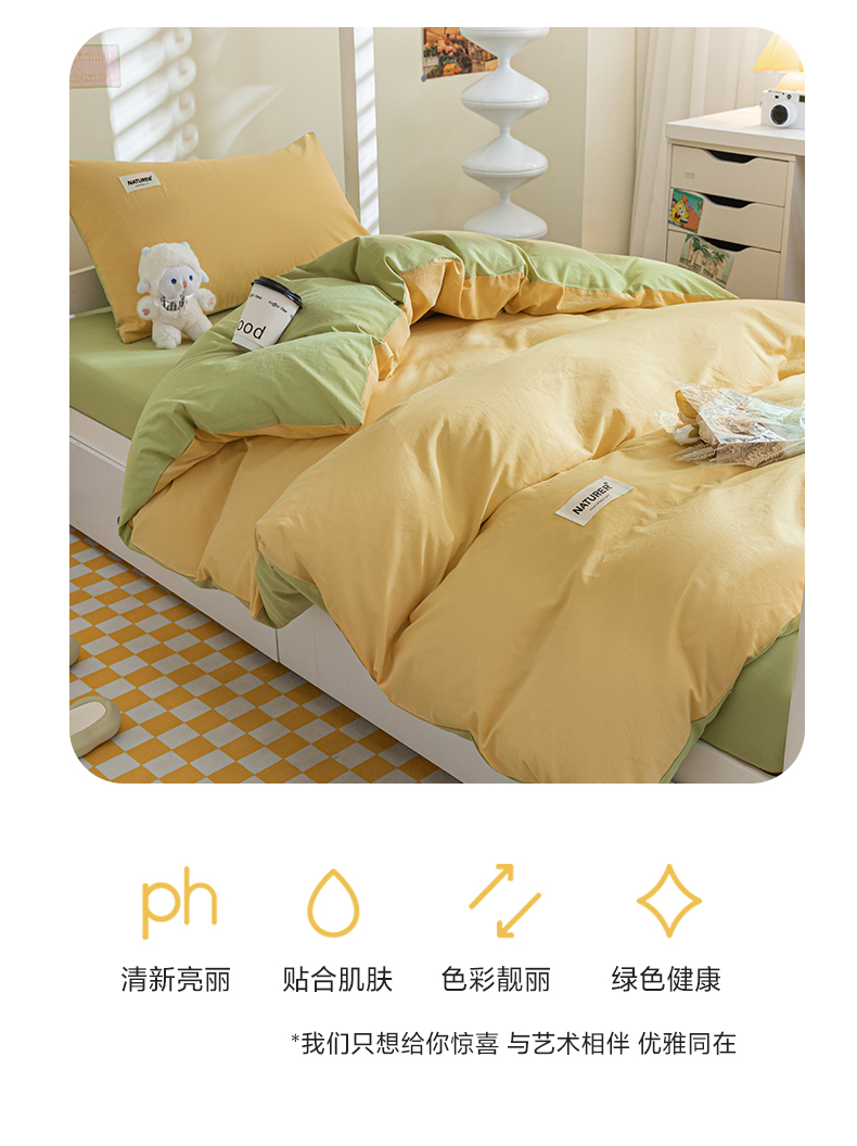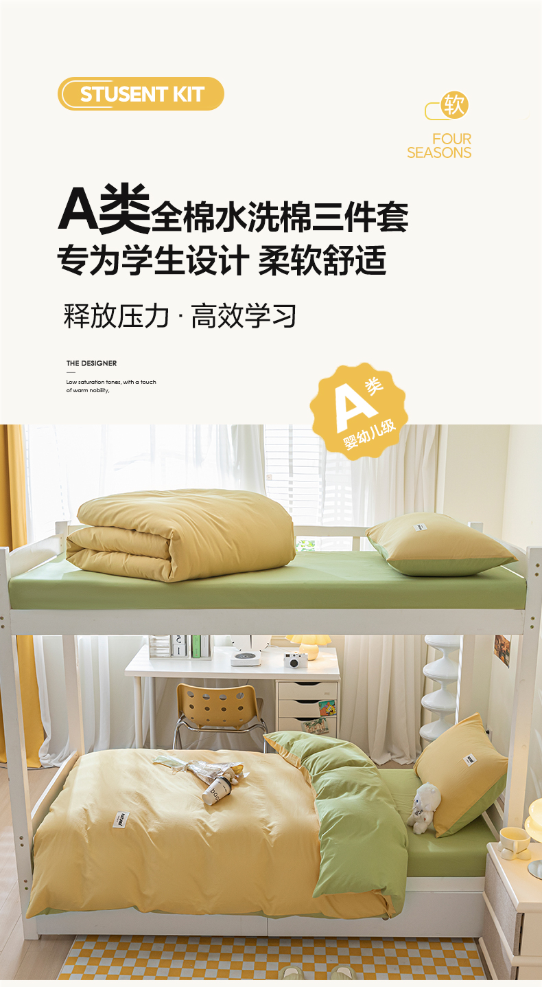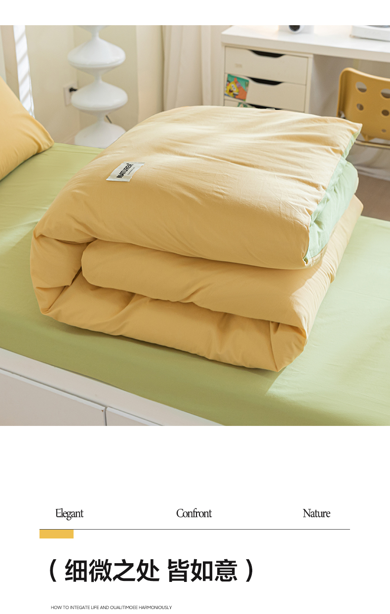 佳汐蓝家纺 2025新款A类全棉水洗棉学生三件套 贴标-初黄+果绿