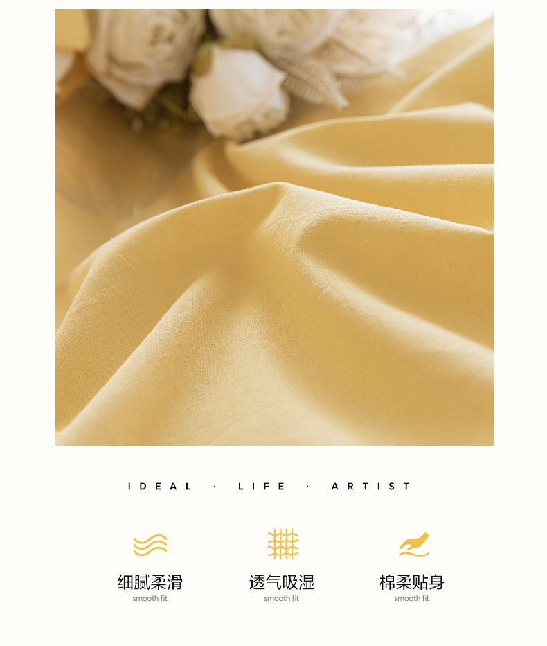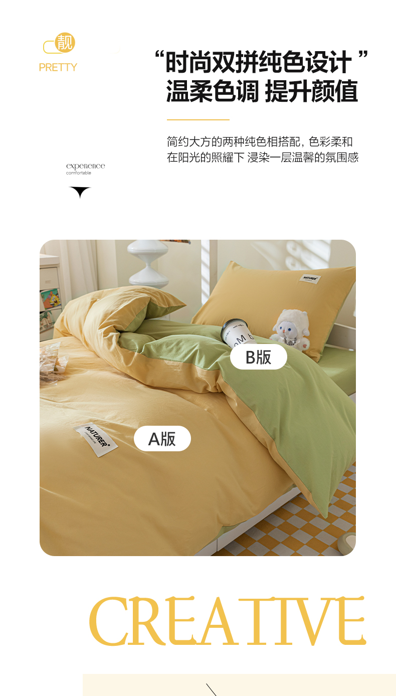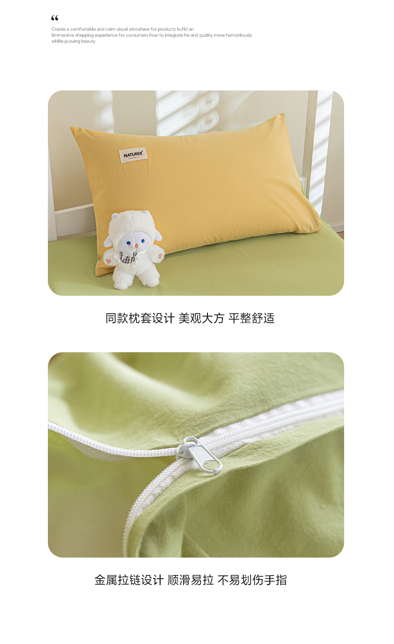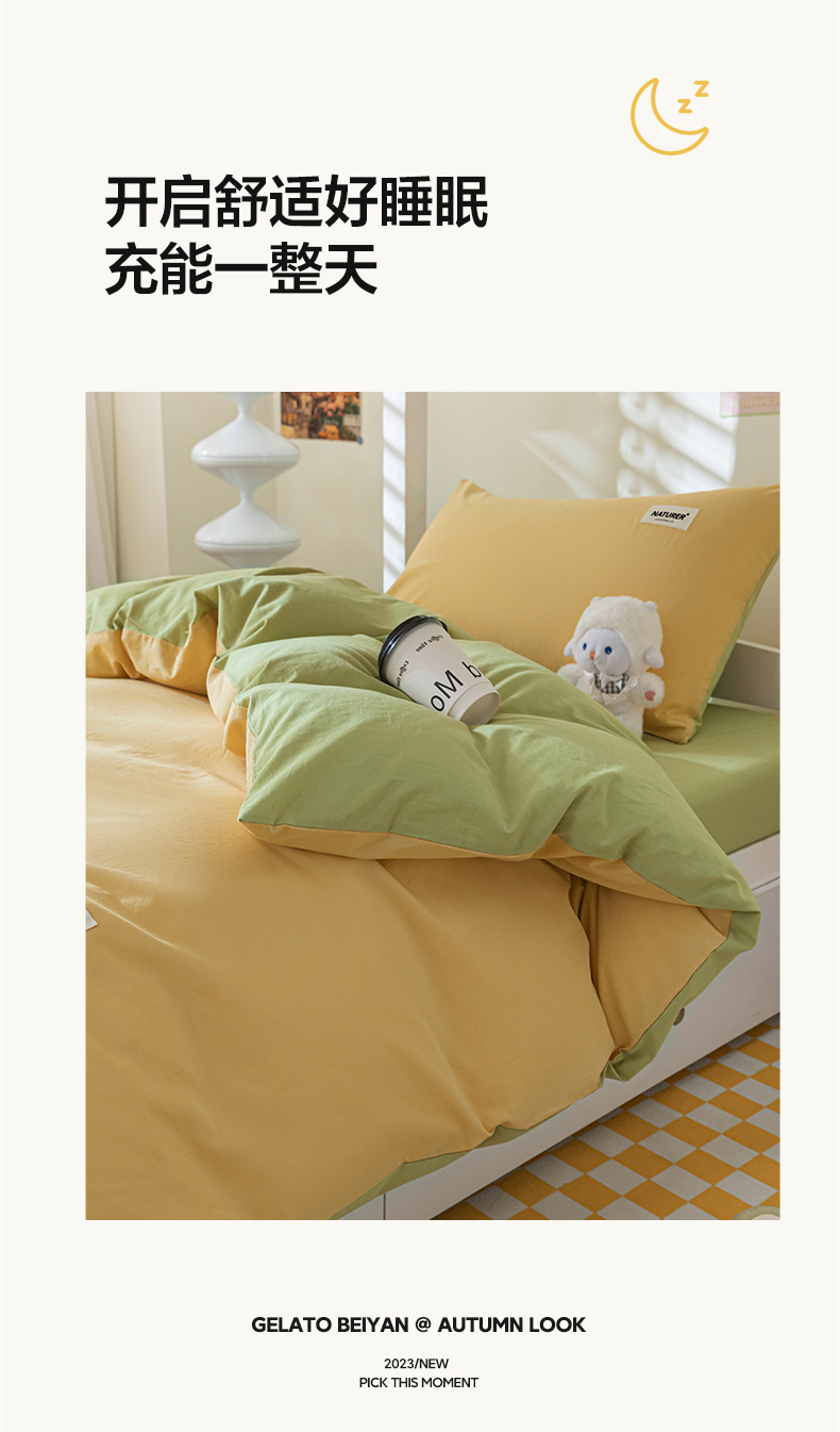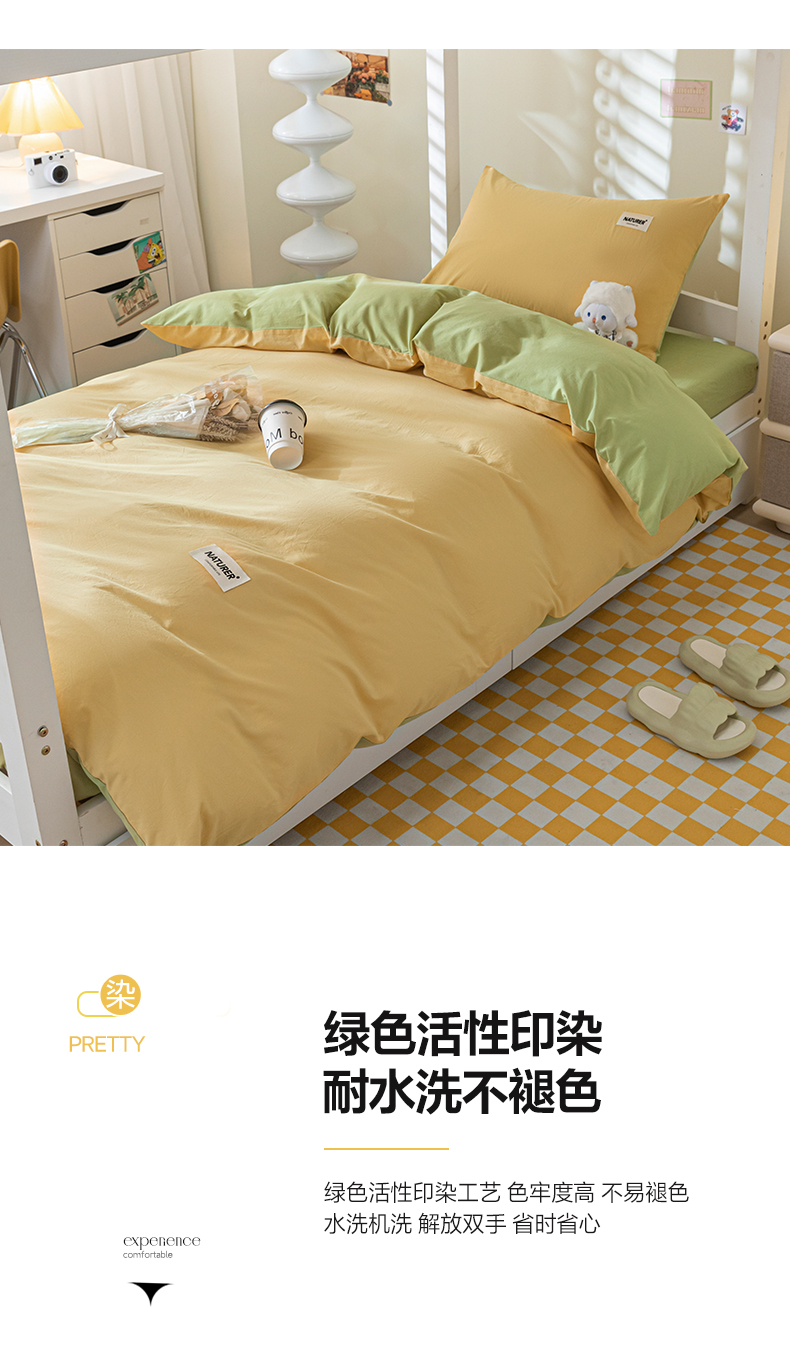 佳汐蓝家纺 2025新款A类全棉水洗棉学生三件套 贴标-初黄+果绿