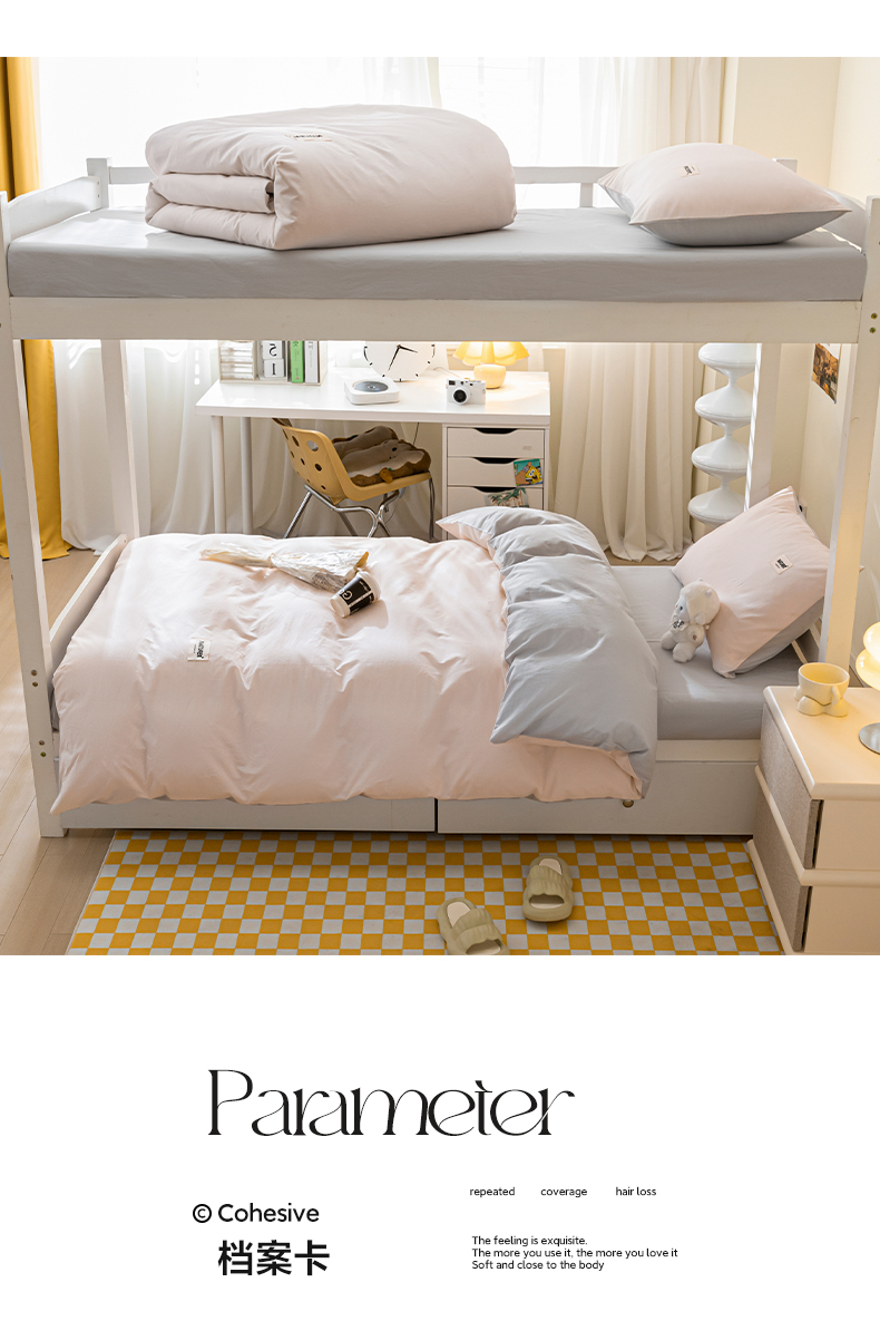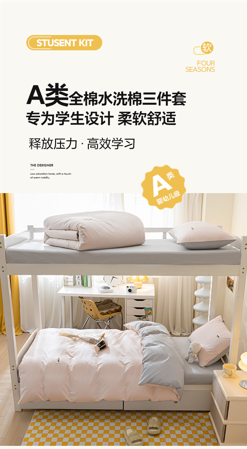 佳汐蓝家纺 2025新款A类全棉水洗棉学生三件套 贴标-奶油粉+山灰