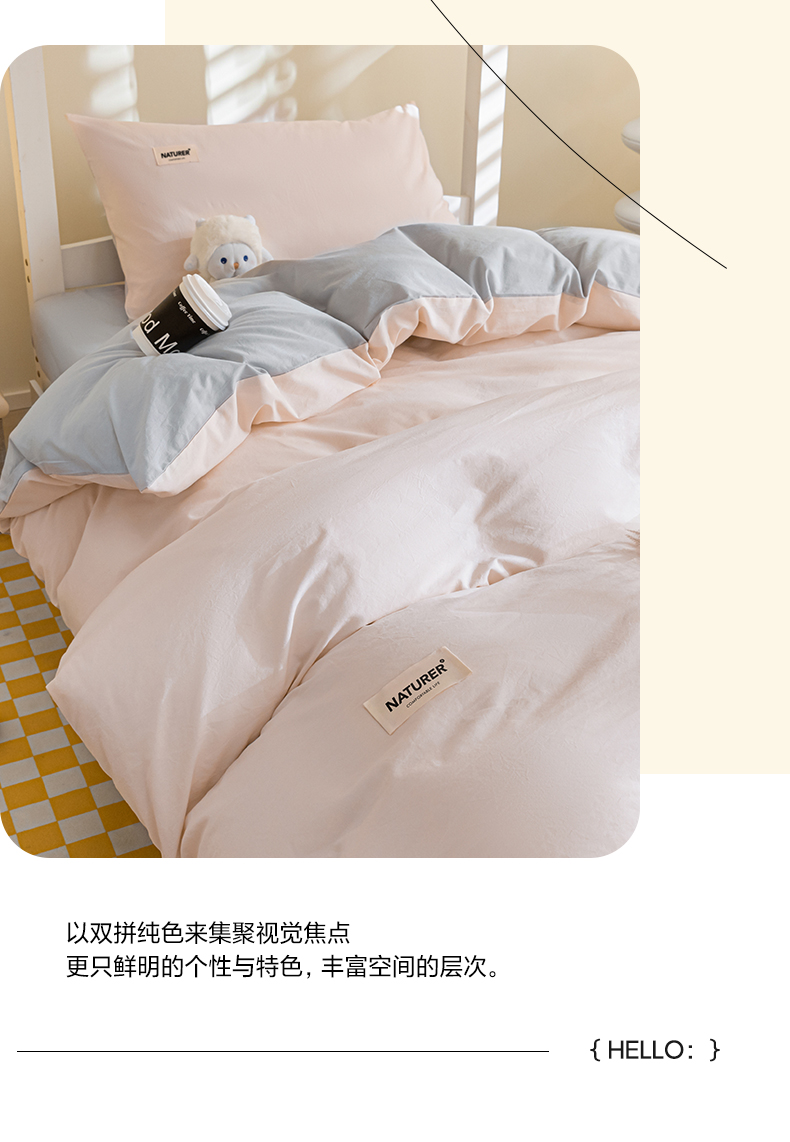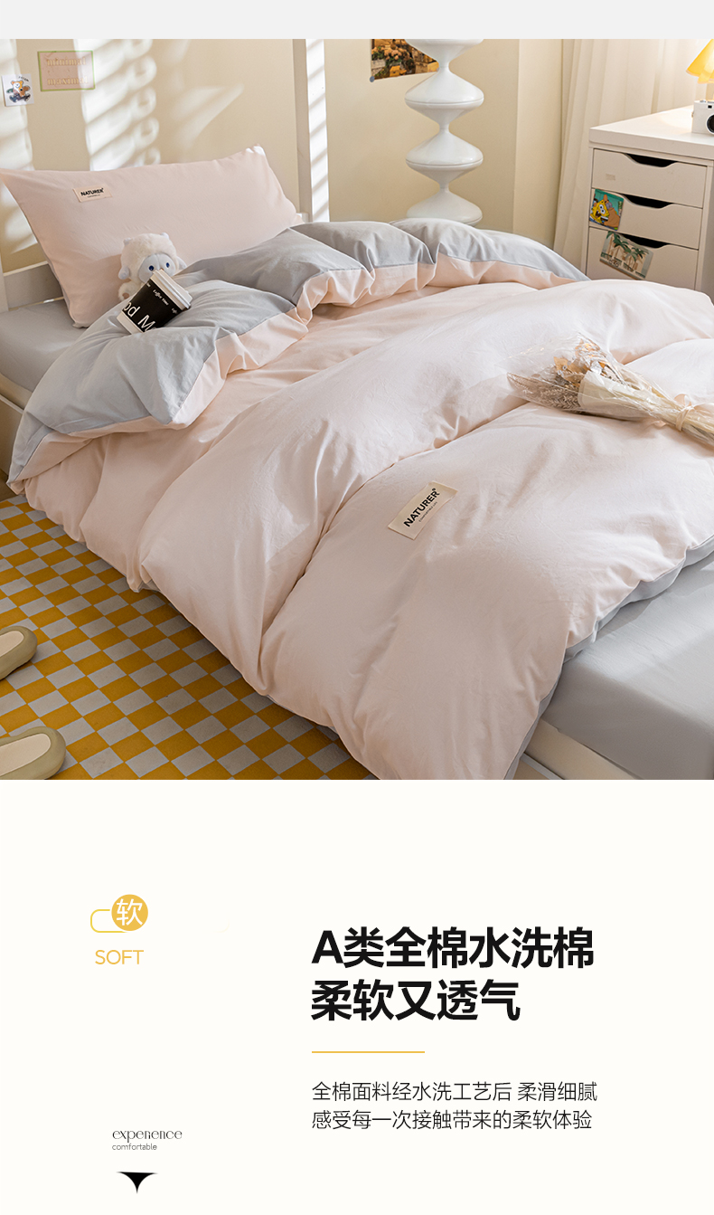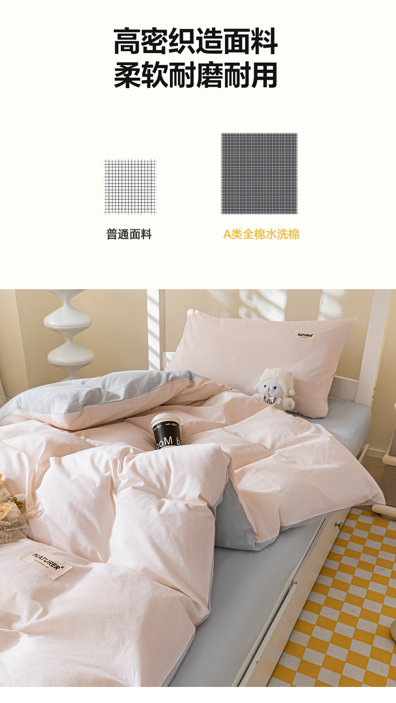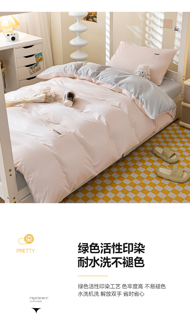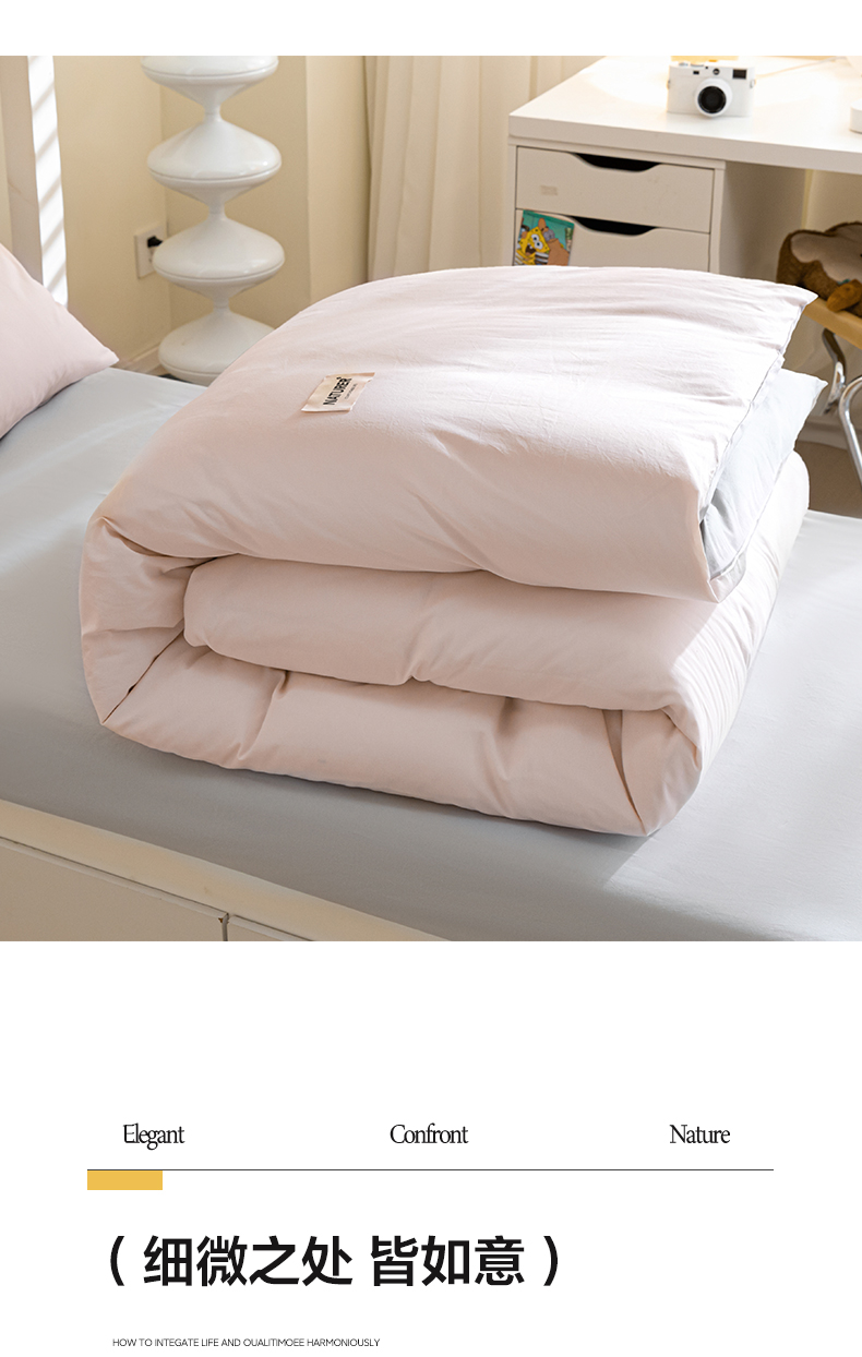商品名称:佳汐蓝家纺 2025新款A类全棉水洗棉学生三件套 贴标-奶油粉+山灰