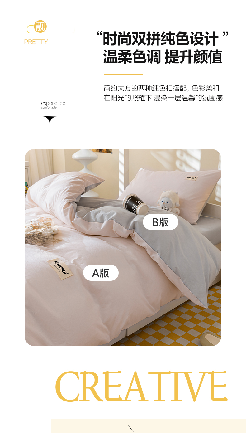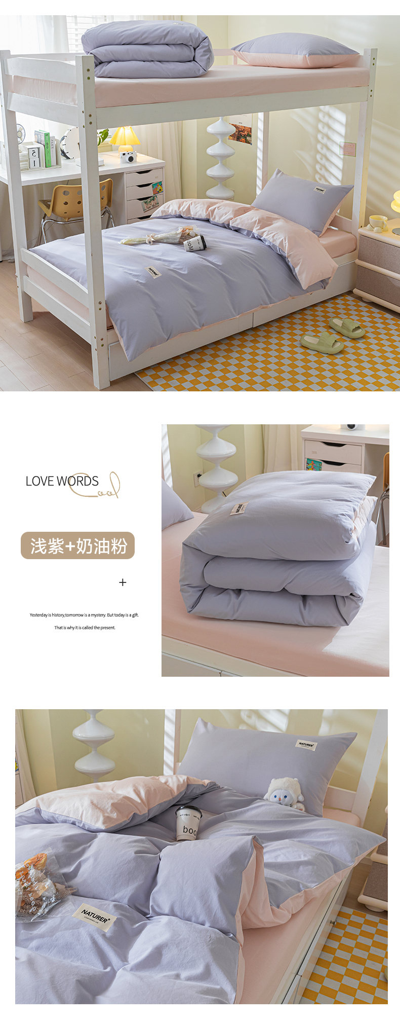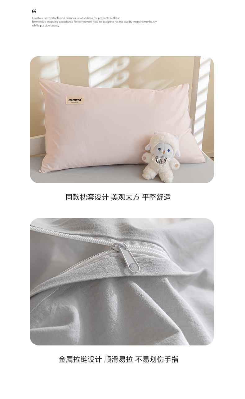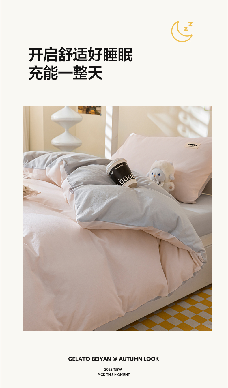 商品名称:佳汐蓝家纺 2025新款A类全棉水洗棉学生三件套 贴标-奶油粉+山灰