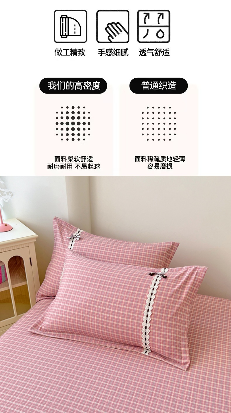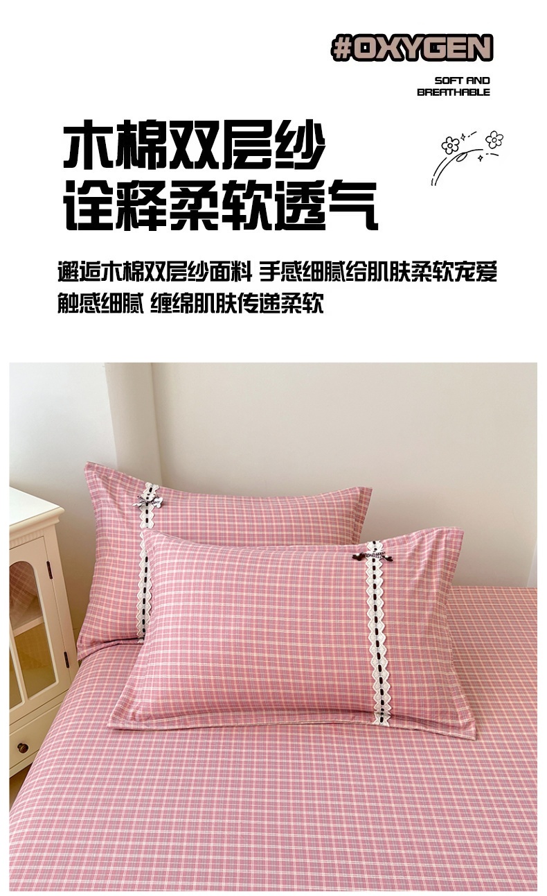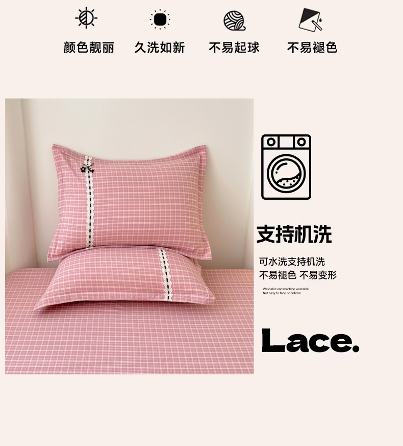 商品名称:梦舒羽 2025新款双层纱蕾丝花边格子枕套宿舍单人枕芯套内胆套一对装 落日红格