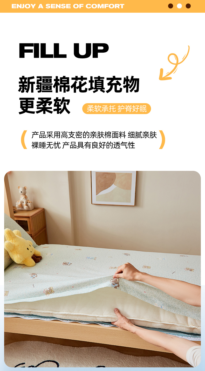 当前位置: 91家纺网 > 商品网购 > 床垫/床褥 > 普通床垫 > 梦镜家纺 2025新款A类云感水洗棉印花床褥 少女象